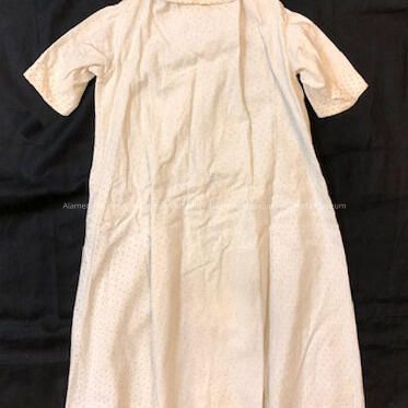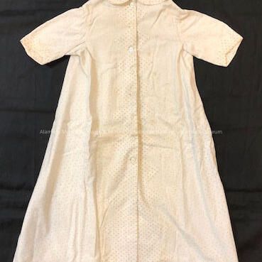 History of Object: Baby robe which appears to be home made and worn by Adeline Toye Cox as a baby.