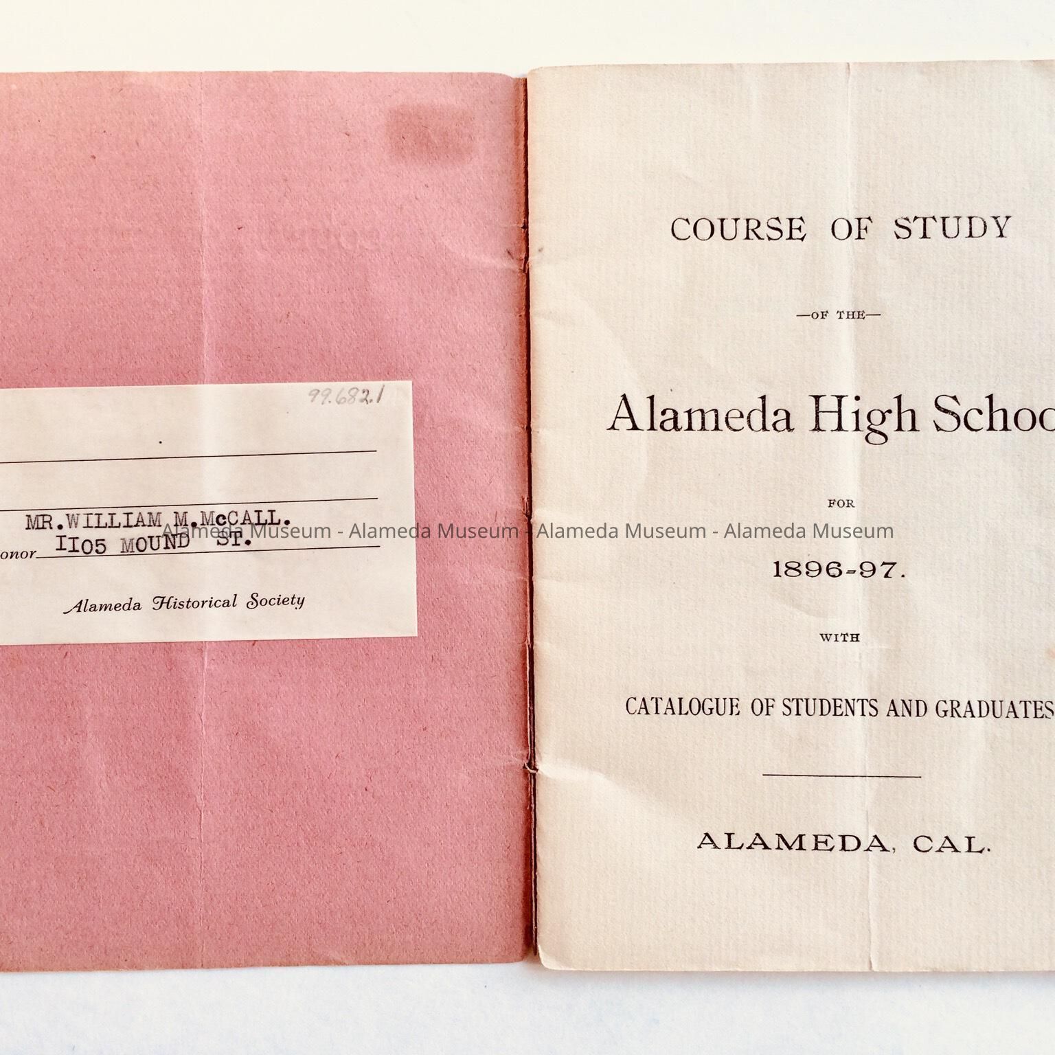 Course booklet Alameda High School with grads list from 1878, 1896-1897Entry/Object ID