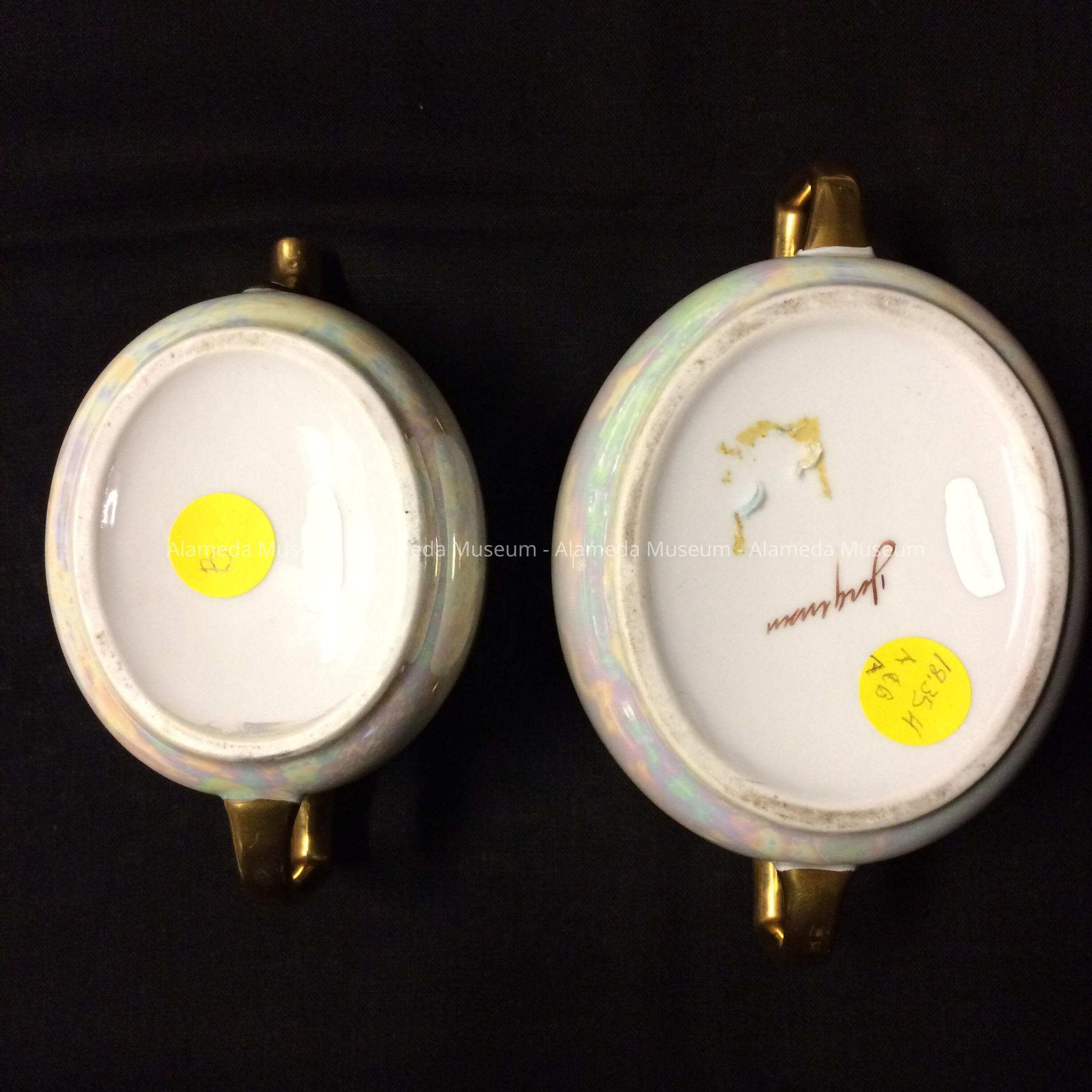 History of Object: A hand painted porcelain set by Thos. Jorgensen of Alameda.