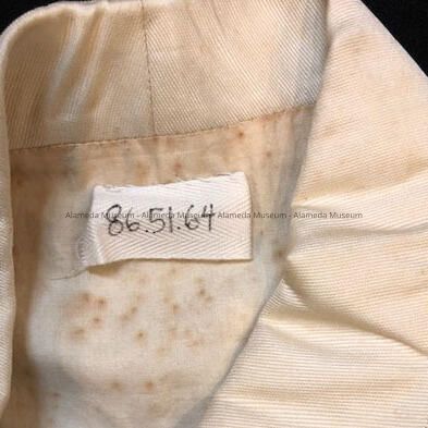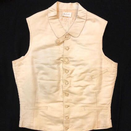 Description: Cream color silk faille man's vest has 9 self covered buttons.