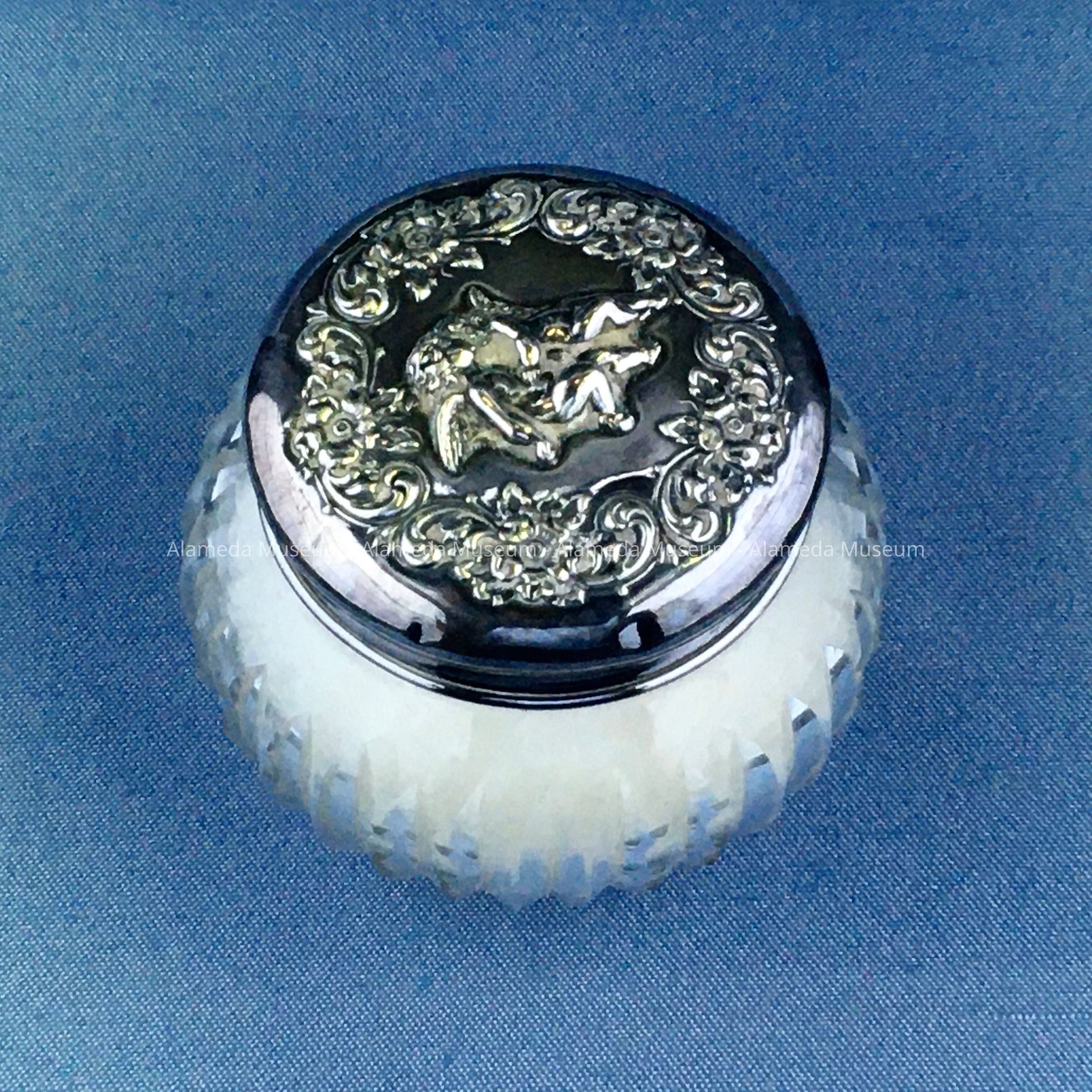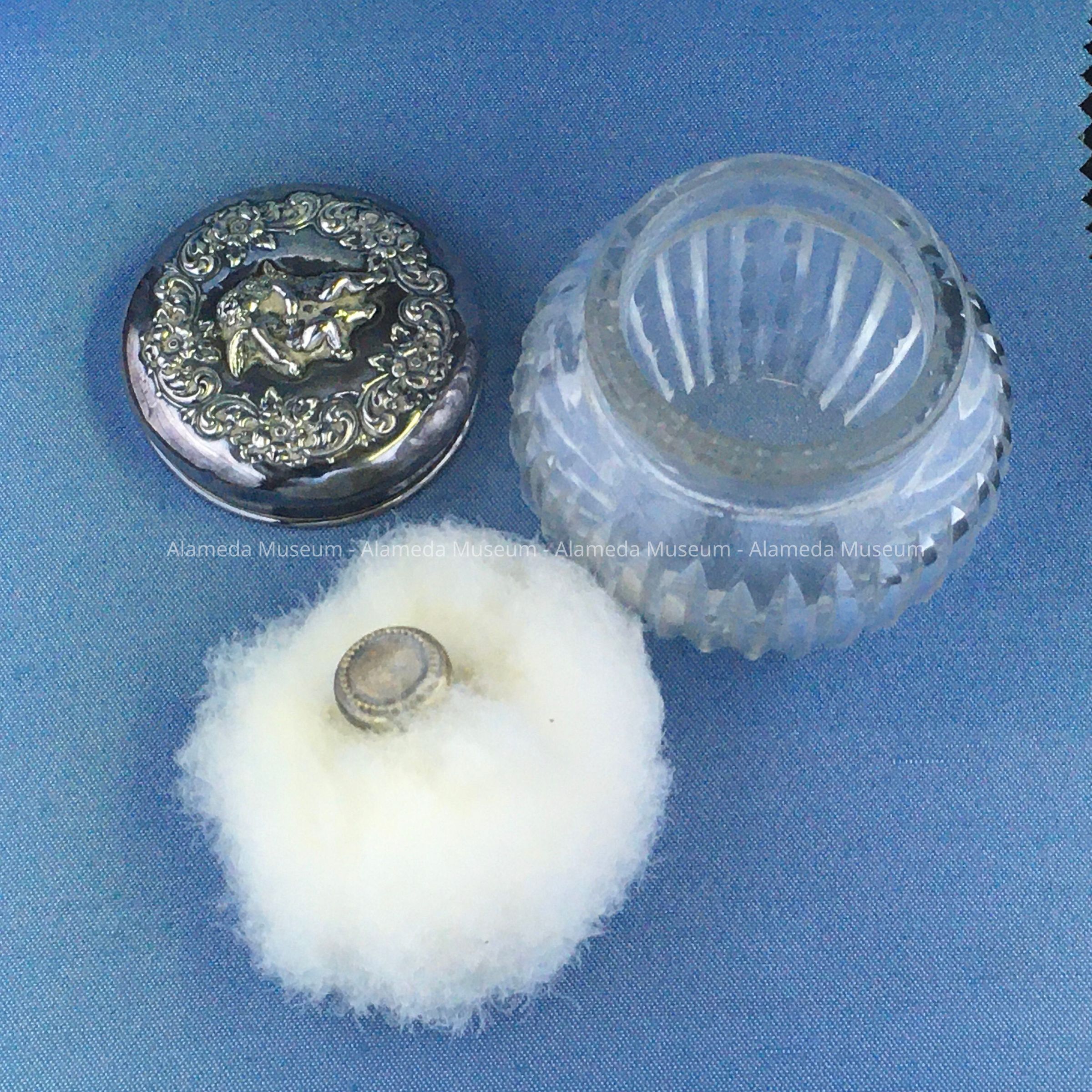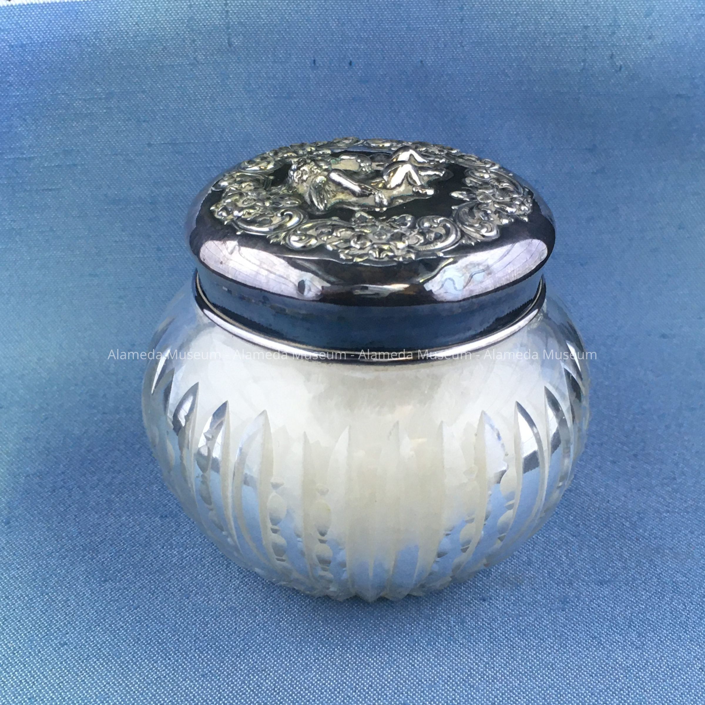 History of Object: Powder jar owned by Maude, wife of Neil Macdonald, old-time residents of Alameda.