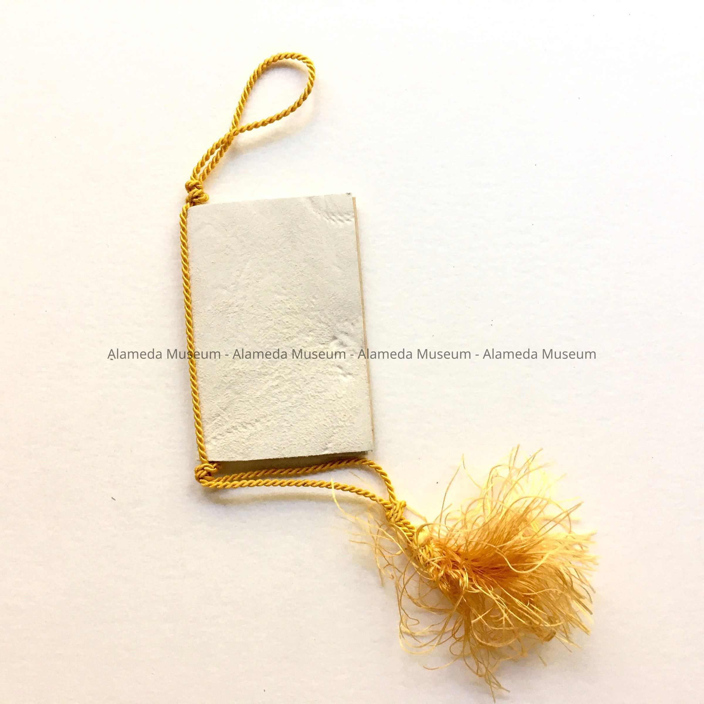 BOOKLET. COVER WHITE KID. BINDING TIED WITH GOLD STRING AND TASSEL