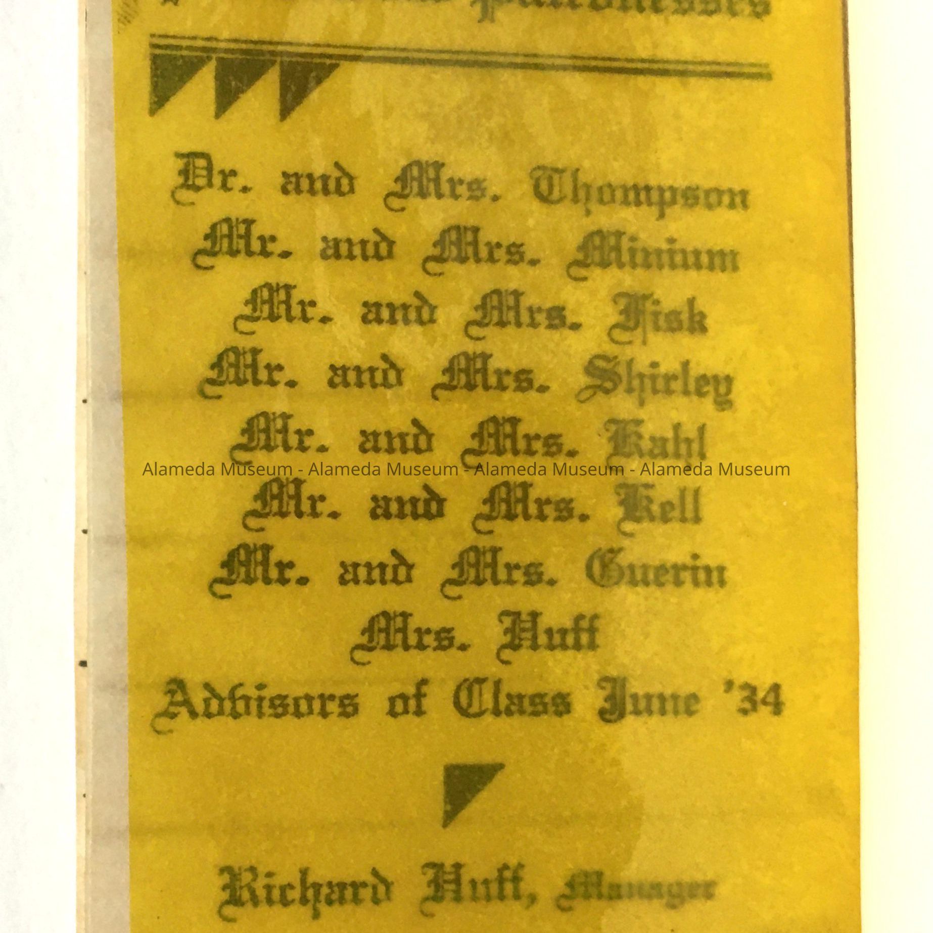 Dance Card, Senior Ball, Alameda High School, 1934Entry/Object ID