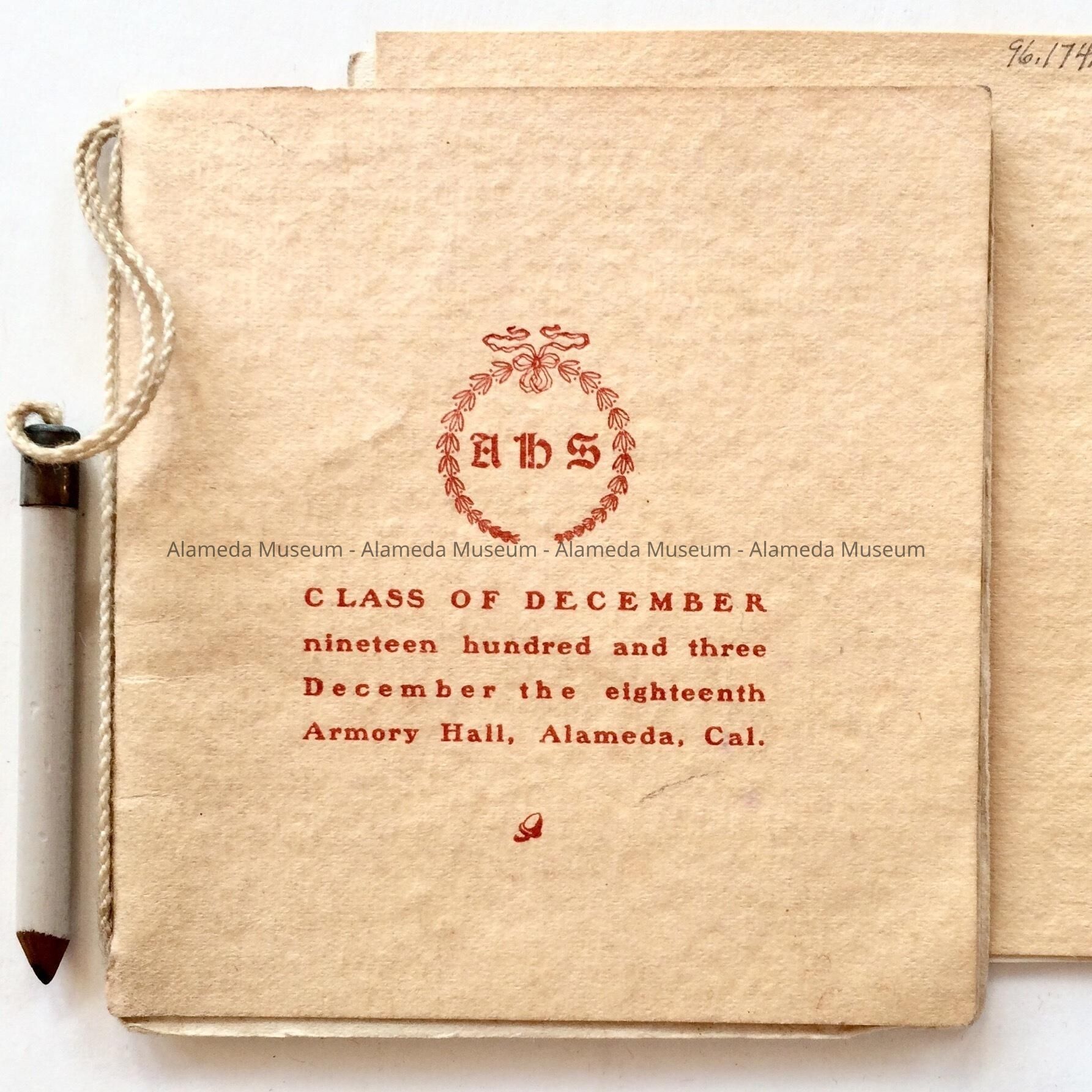 Dance Program for the Alameda High School Class of December 1903Entry/Object ID
