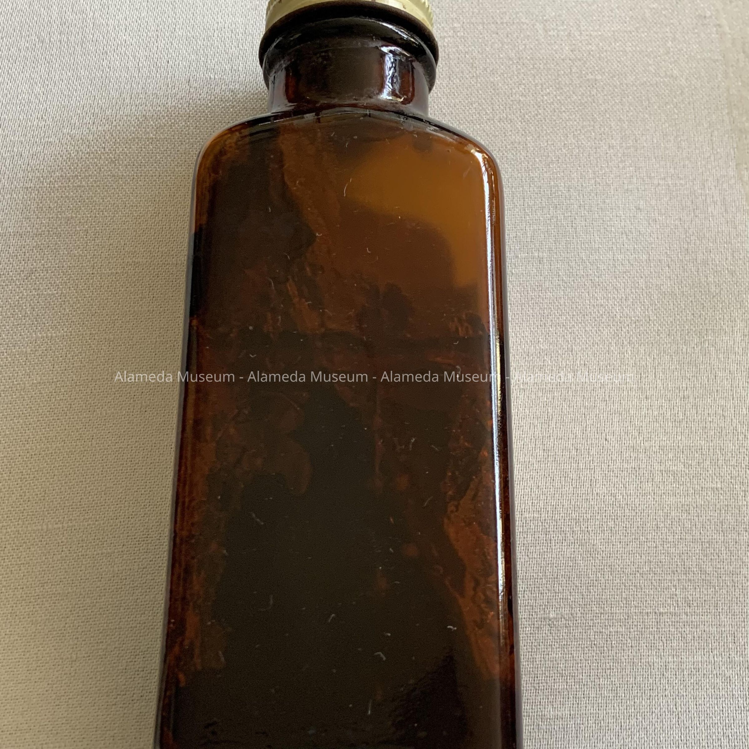 Dark amber bottle of medication purchased at Miller's Drug Store, c. 1950Entry/Object ID