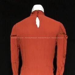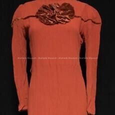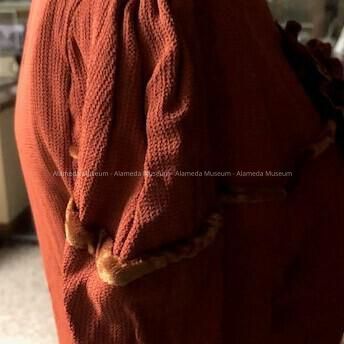 Day dress of rust-colored crepe with silk velvet trim, c. late 1930sEntry/Object ID
