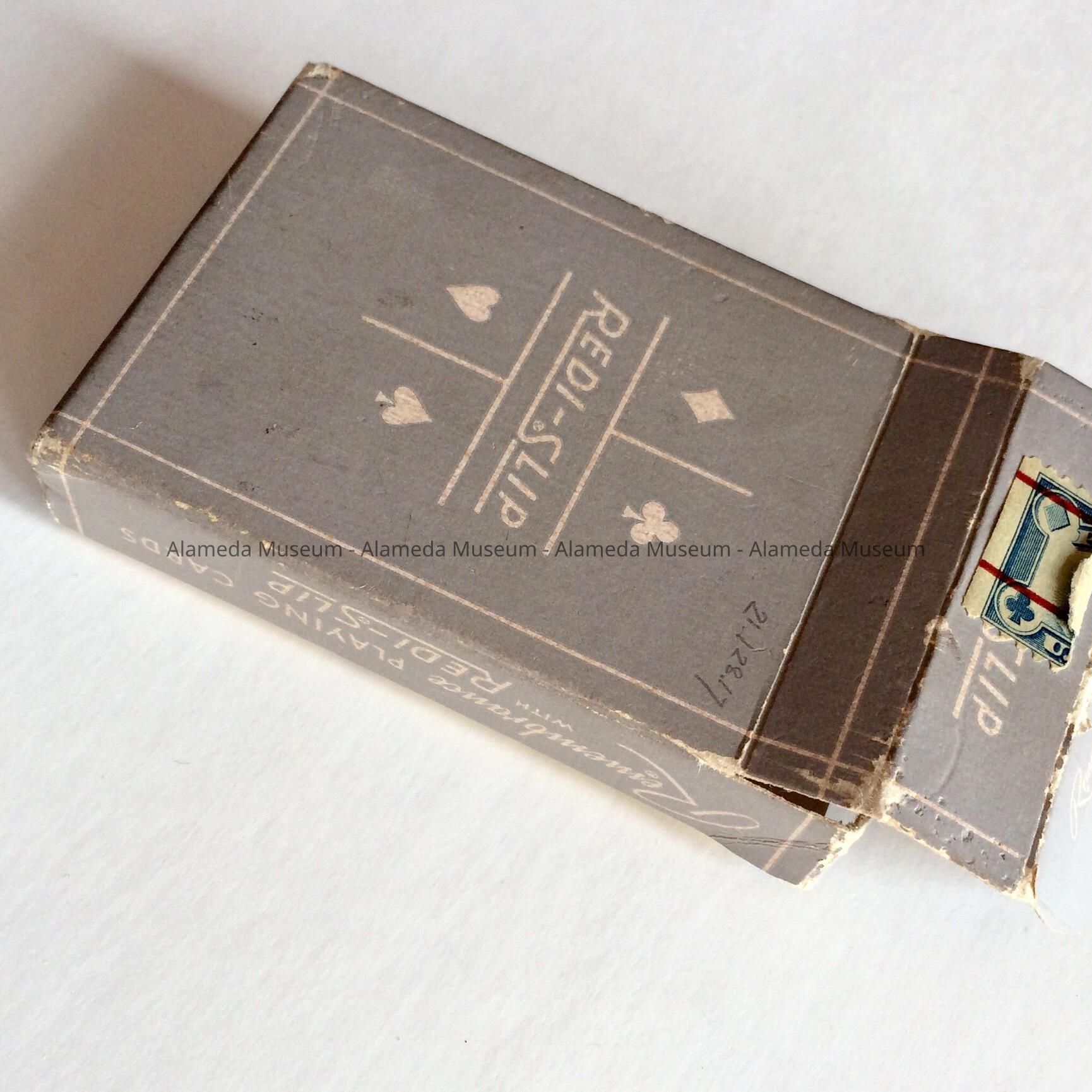 History of Object: Deck of cards advertising Hooper's Chocolates, when based in Alameda. The Hoopers, Gordon and Barbara, both worked at Miss Saylor's Chocolates, where Gordon worked himself up from clerk to supervisor of the plant. Around 1940 they started their own business, based in Oakland, although they had a shop in Alameda, corner Park and Central. In the 1950s they took over a candy business in Oakland, and the Alameda location disappeared.