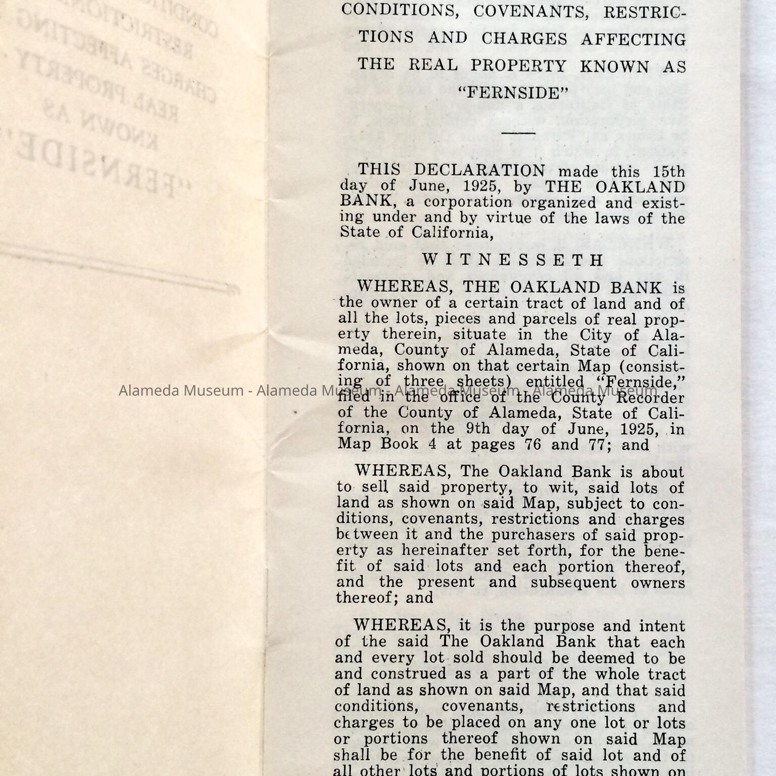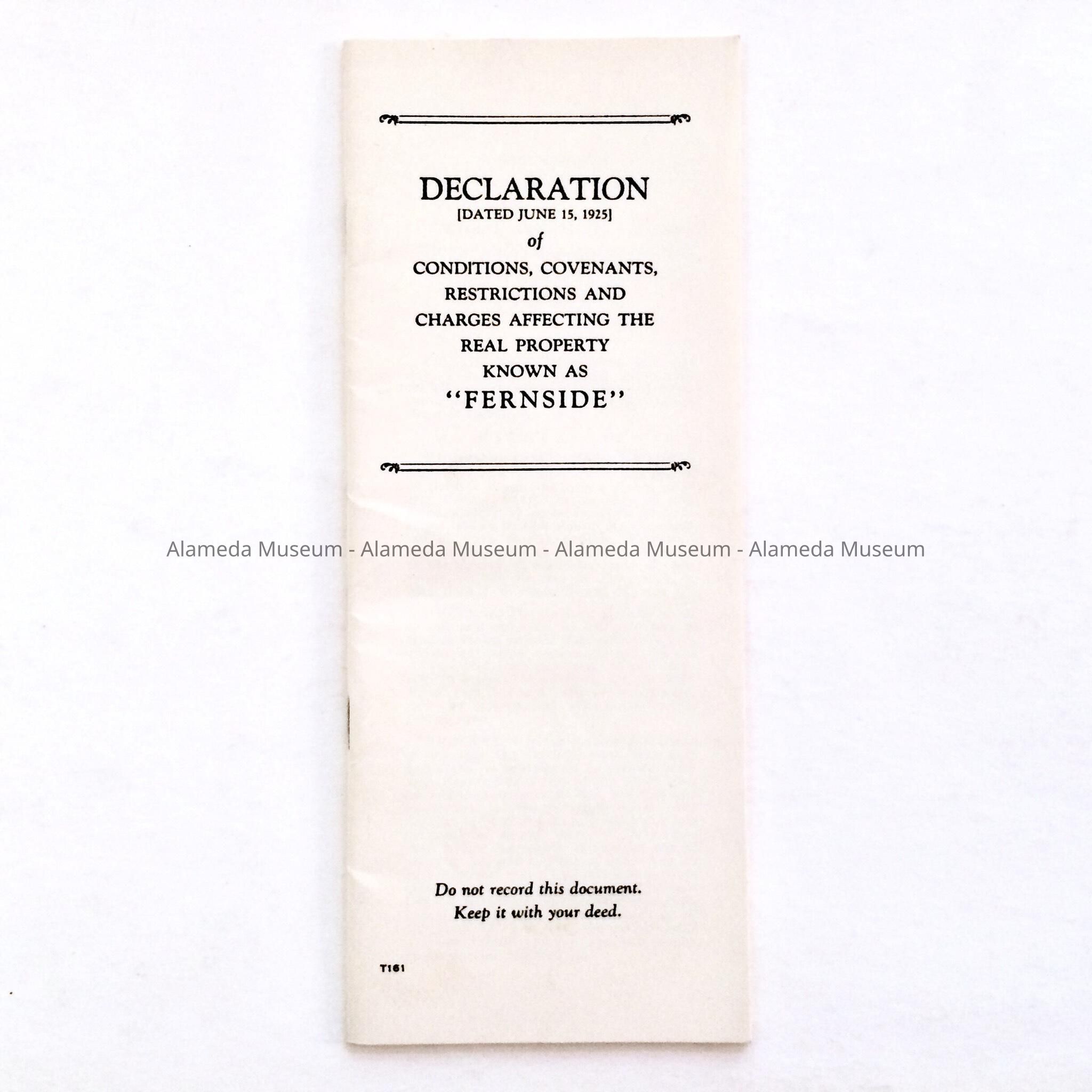 Declaration of Conditions affecting Fernside, 1925Entry/Object ID