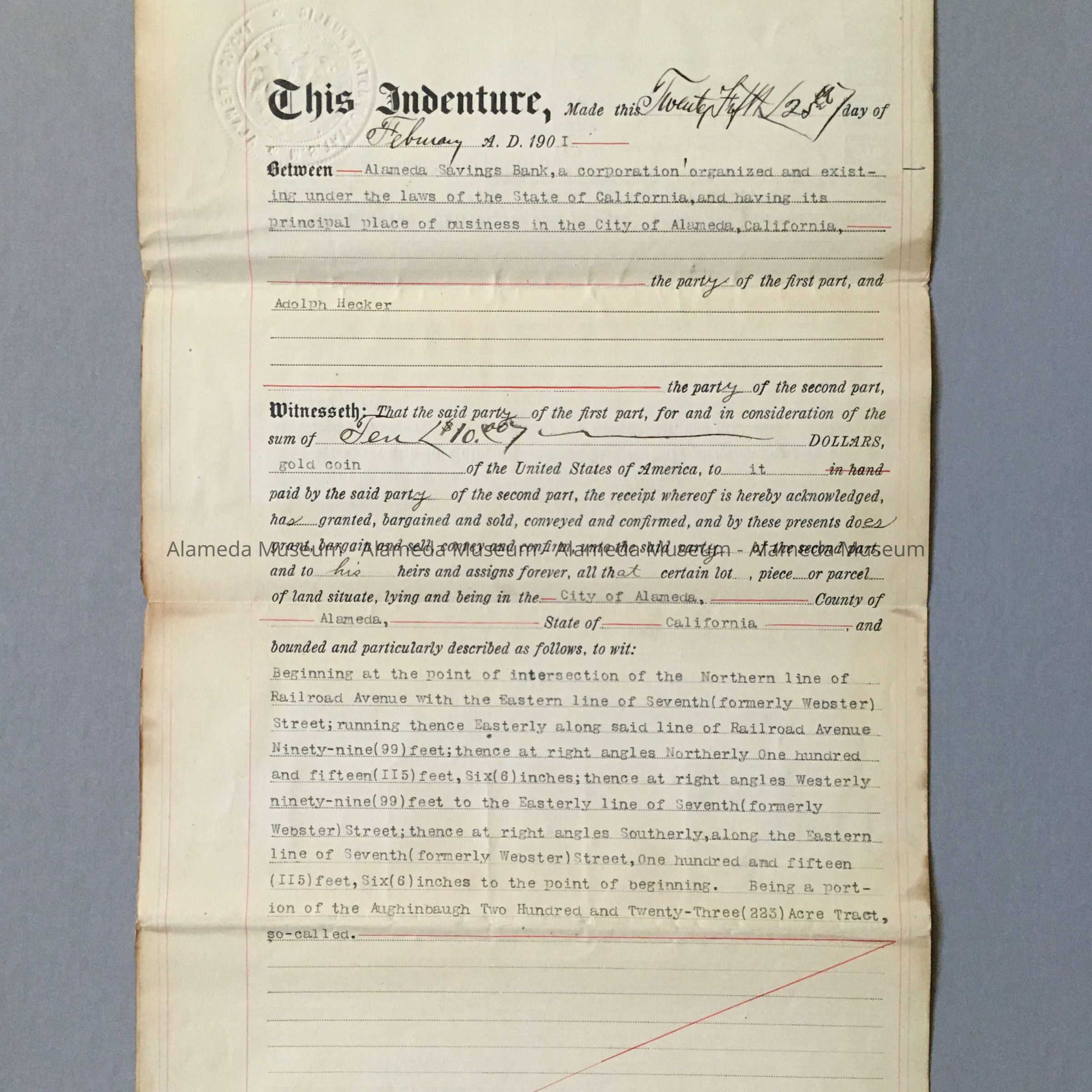 Deed from Alameda Savings Bank to Adolph Hecker, 1901Entry/Object ID