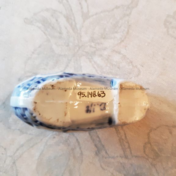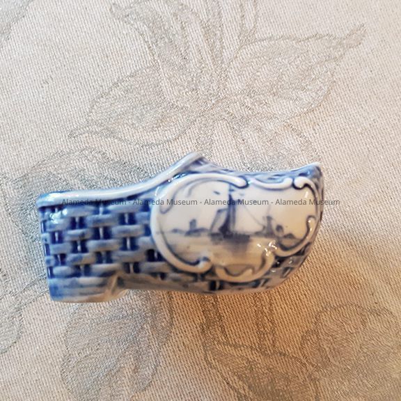 History of Object: DUTCH "DELFT" PORCELAIN SLIPPER THAT BELONGED TO THE BLAKE-DYER RESIDENCE, CLINTON AVENUE, ALAMEDA, CA.
