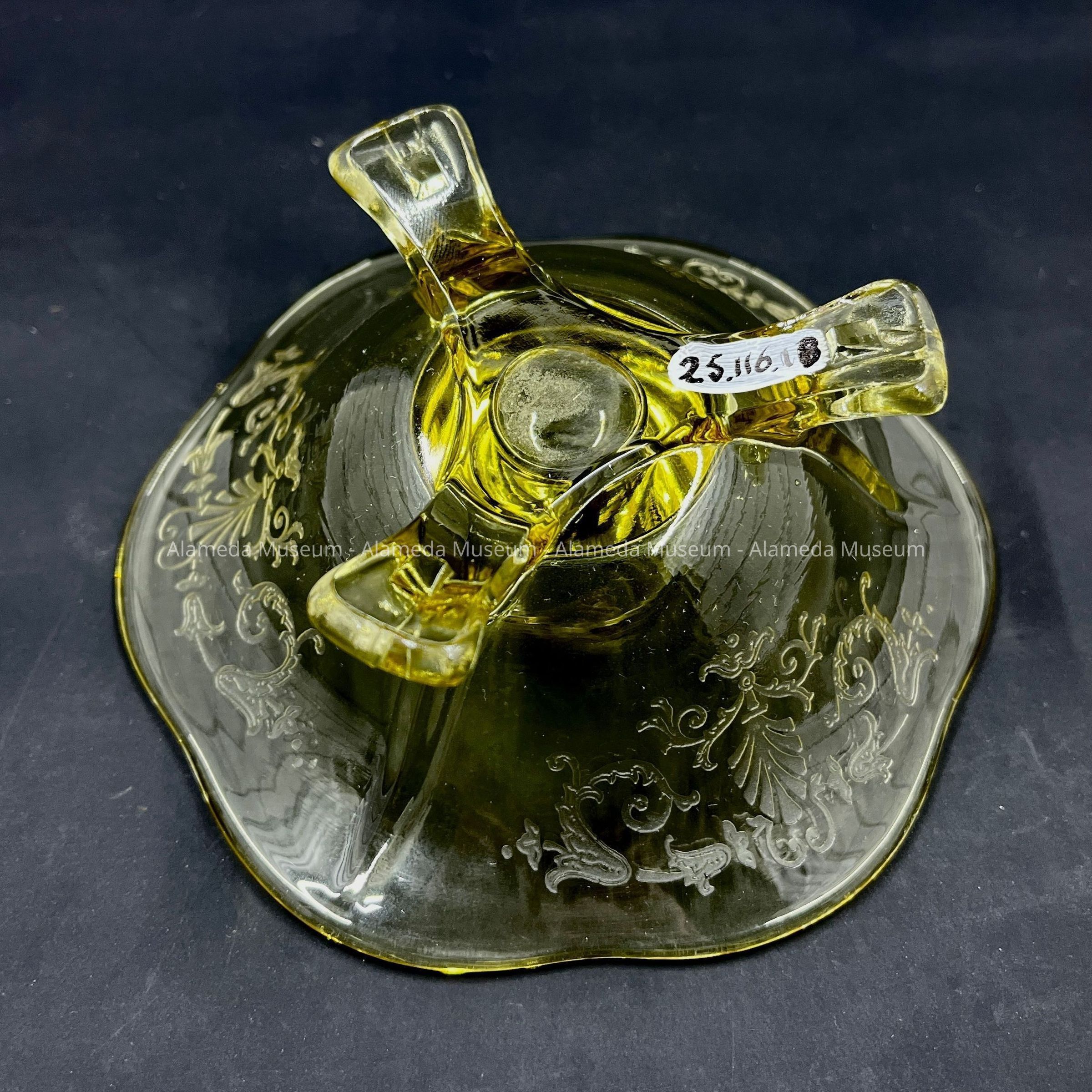 History of Object: Depression Glass objects, collected from give-a-ways at the Alameda Theatre during the depression.