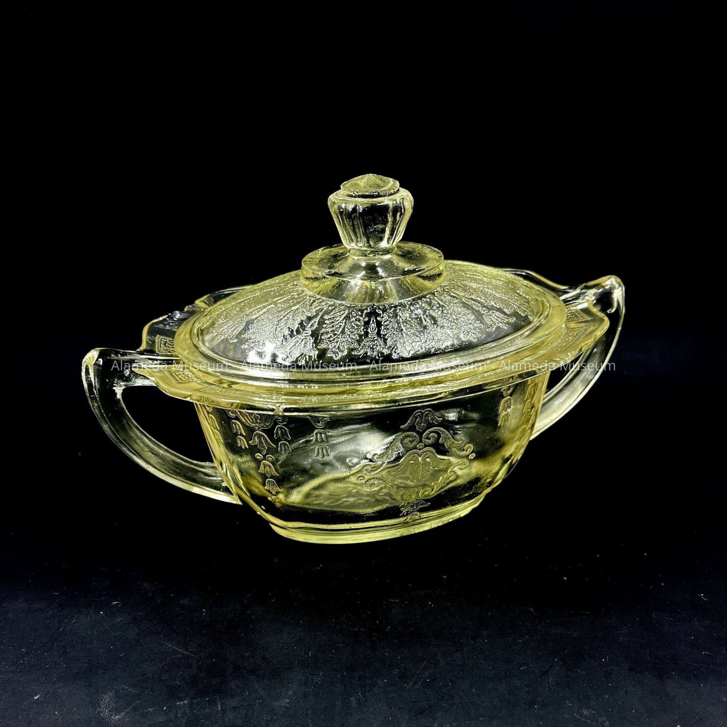 Depression Glass sugar bowl from the Alameda Theatre, 1930sEntry/Object ID