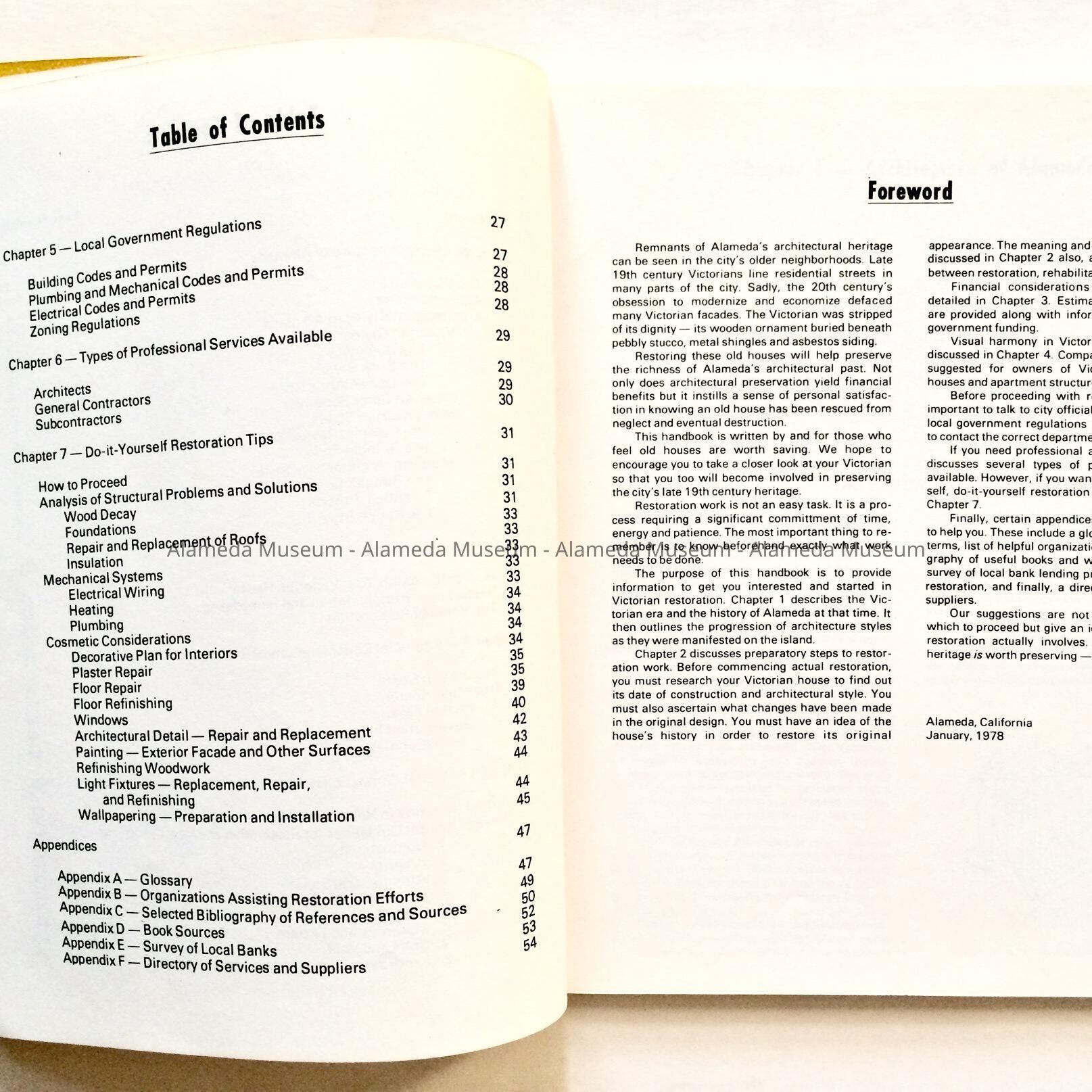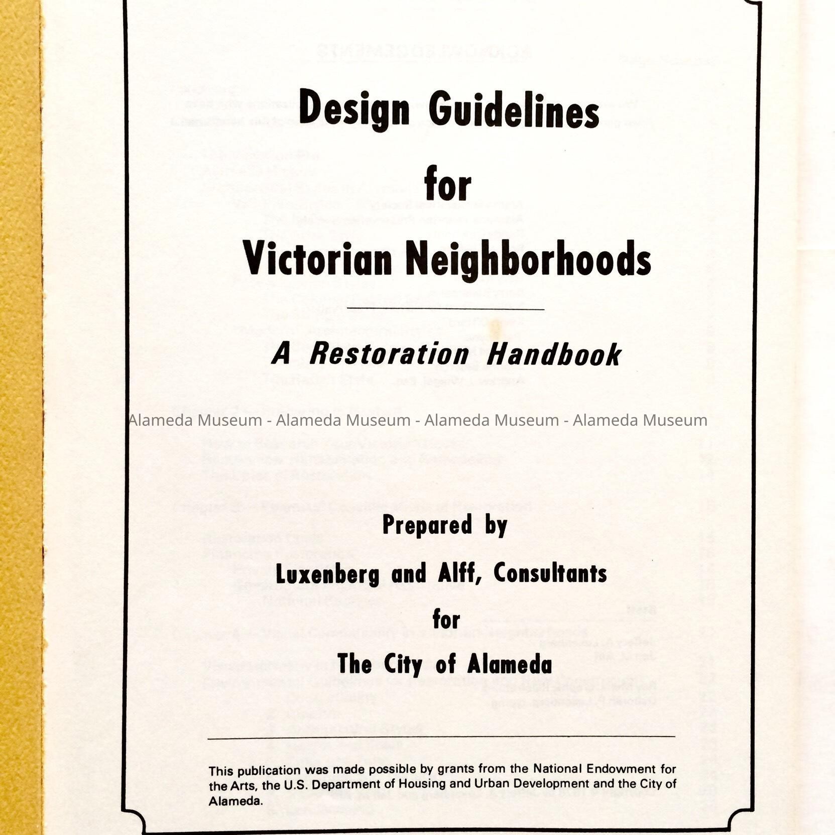 History of Object: Restoration handbook by Luxenberg & Alff, consultants for the City of Alameda, through grants by the National Endowment for the Arts.