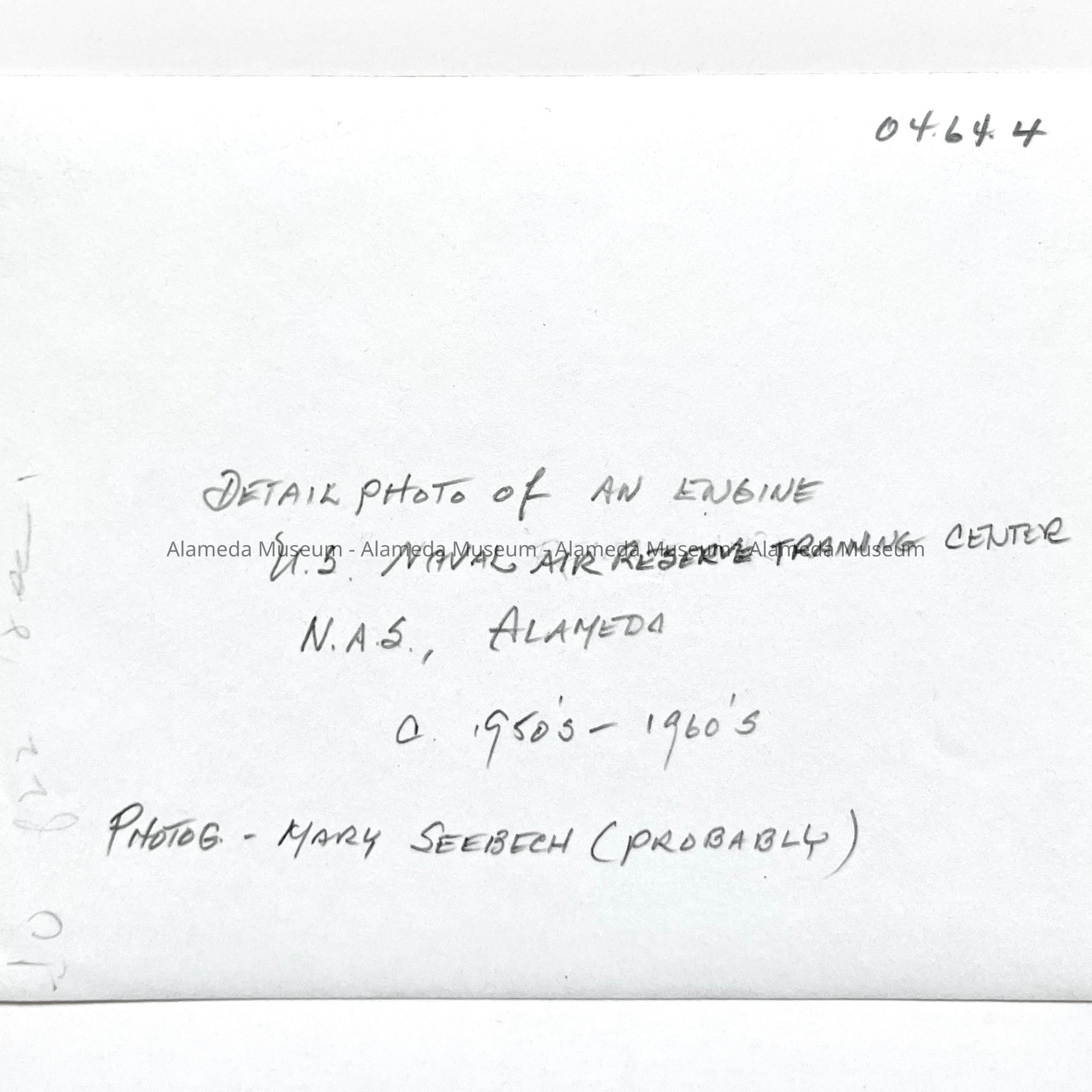 Detail photo of an aircraft engine, c. 1950-1960sEntry/Object ID