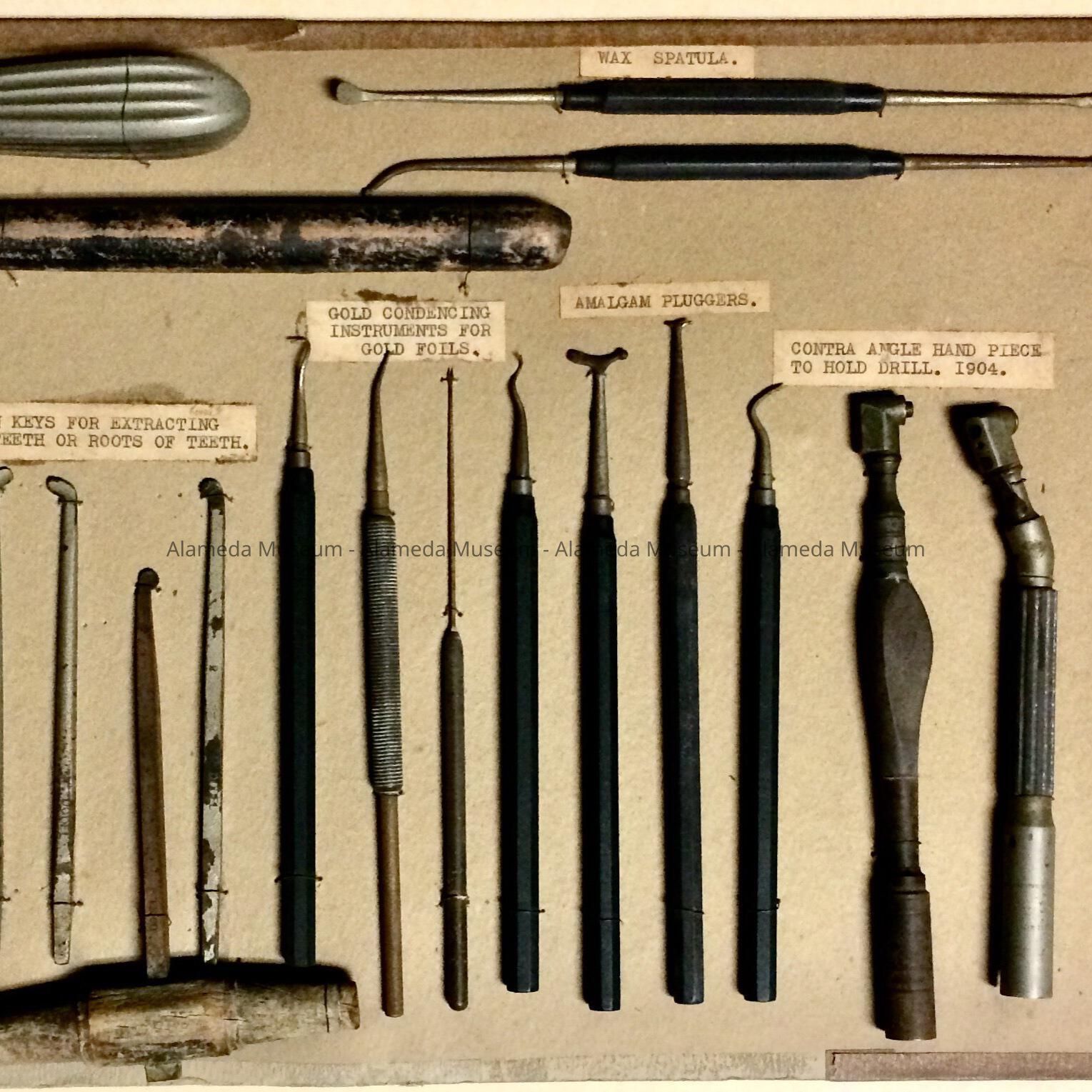 History of Object: From original attached annotation: "These old-fashioned dental instruments were owned and used by Dr. Wm. Shepherd, about 1904." The donor, Dr. Ashukian, evidently bought out Dr. Shepherd's practice.