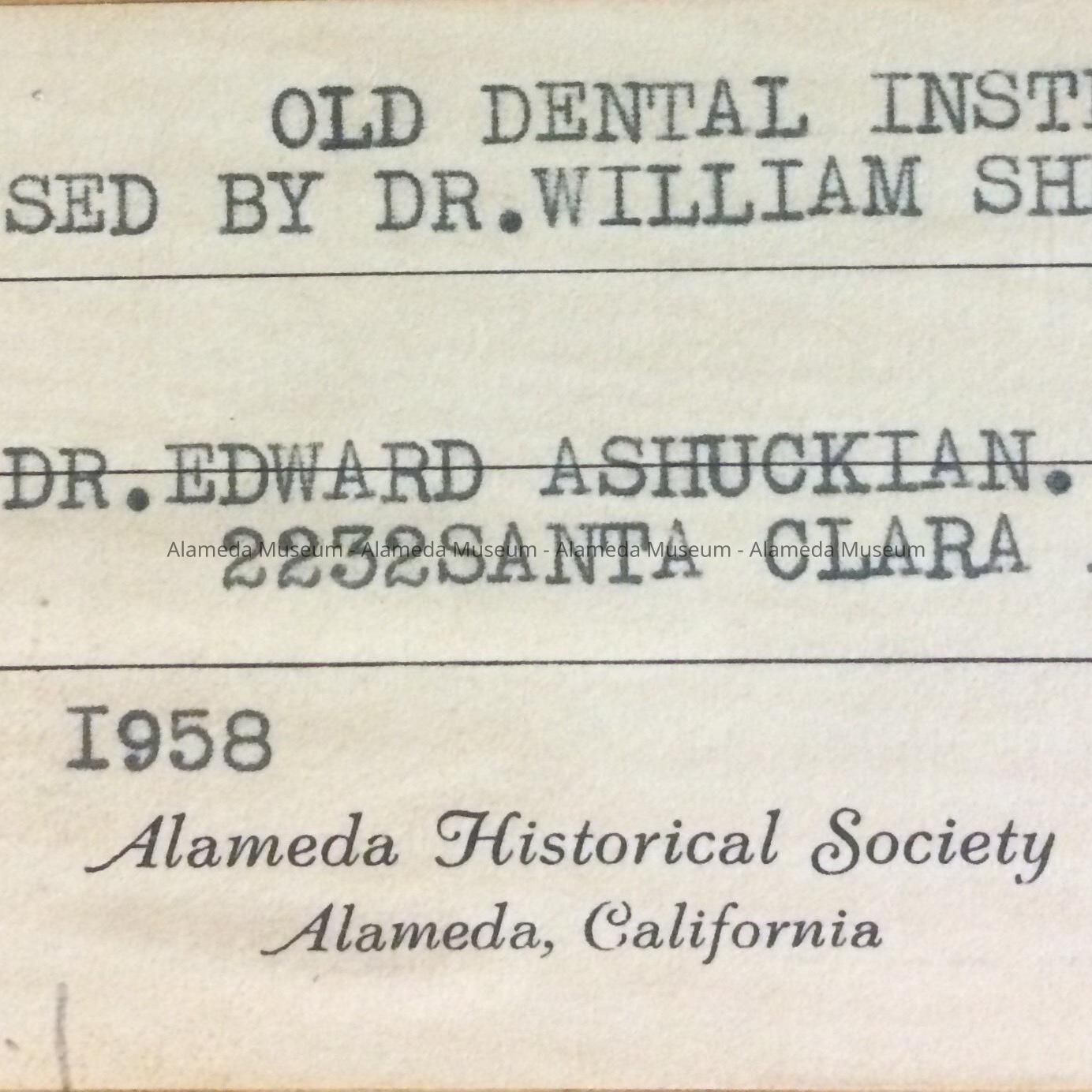 Acquired from: Edward Ashukian, DDS
