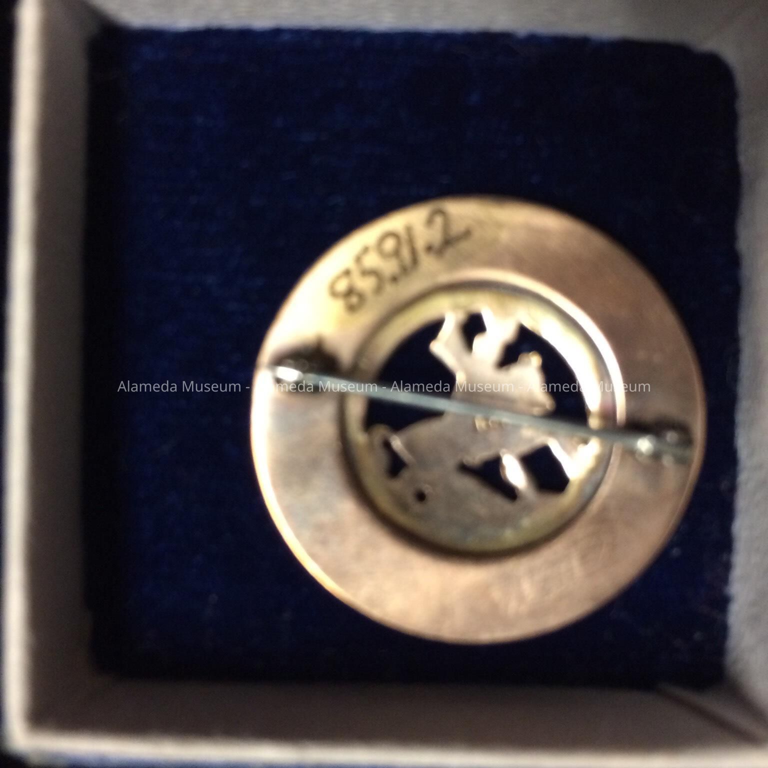 History of Object: Fraternal pin of Edith McGinnis, Past District Deputy of the Alameda Lodge Daughters of St. George. The Alameda branch was established in 1922 and disbanded in 1976.