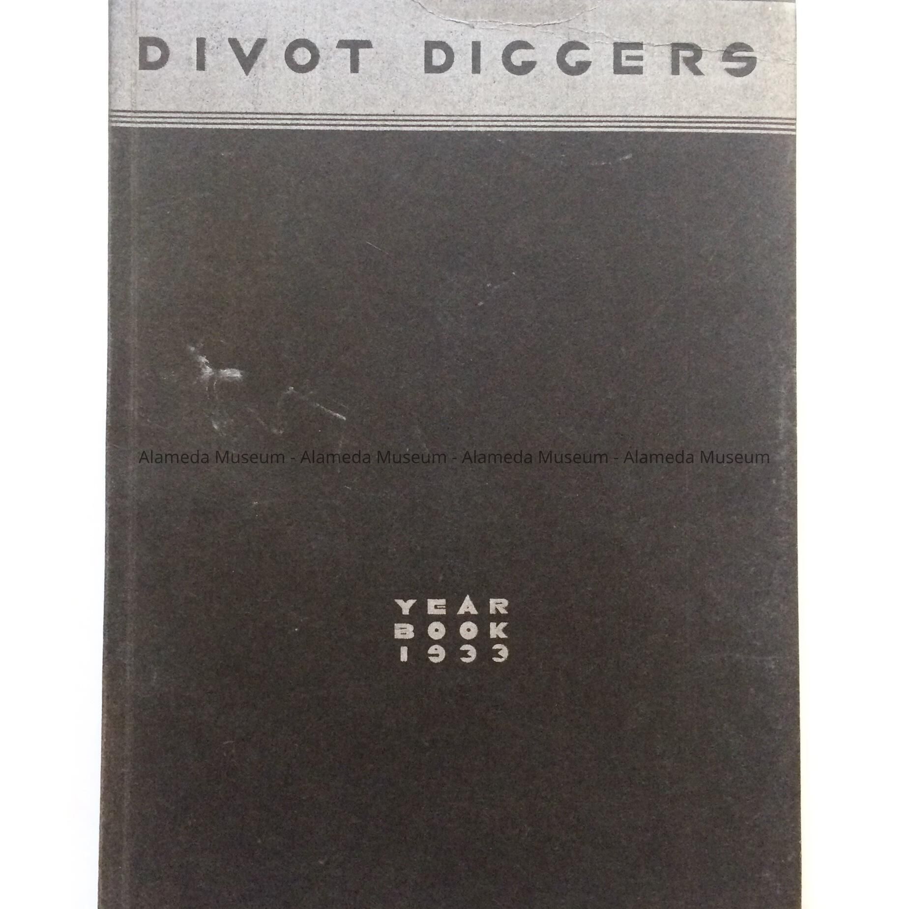 VOLUME I of the "DIVOT DIGGERS" YEARBOOK, PUBLISHED BY THE MEMBERS OF THE ALAMEDA GOLF CLUB, IN 1933. THE VOLUME WAS DEDICATED TO EARL FRY, PROFESSIONAL GOLFER OF THE ALAMEDA MUNICIPAL GOLF COURSE. IT IS ILLUSTRATED WITH PORTRAITS OF OFFICERS AND MEMBERS OF THE GOLD CLUB. ALSO INCLUDED IS INFORMATION PERTAINING TO EVENTS, ETC. OF THE ORGANIZATION.