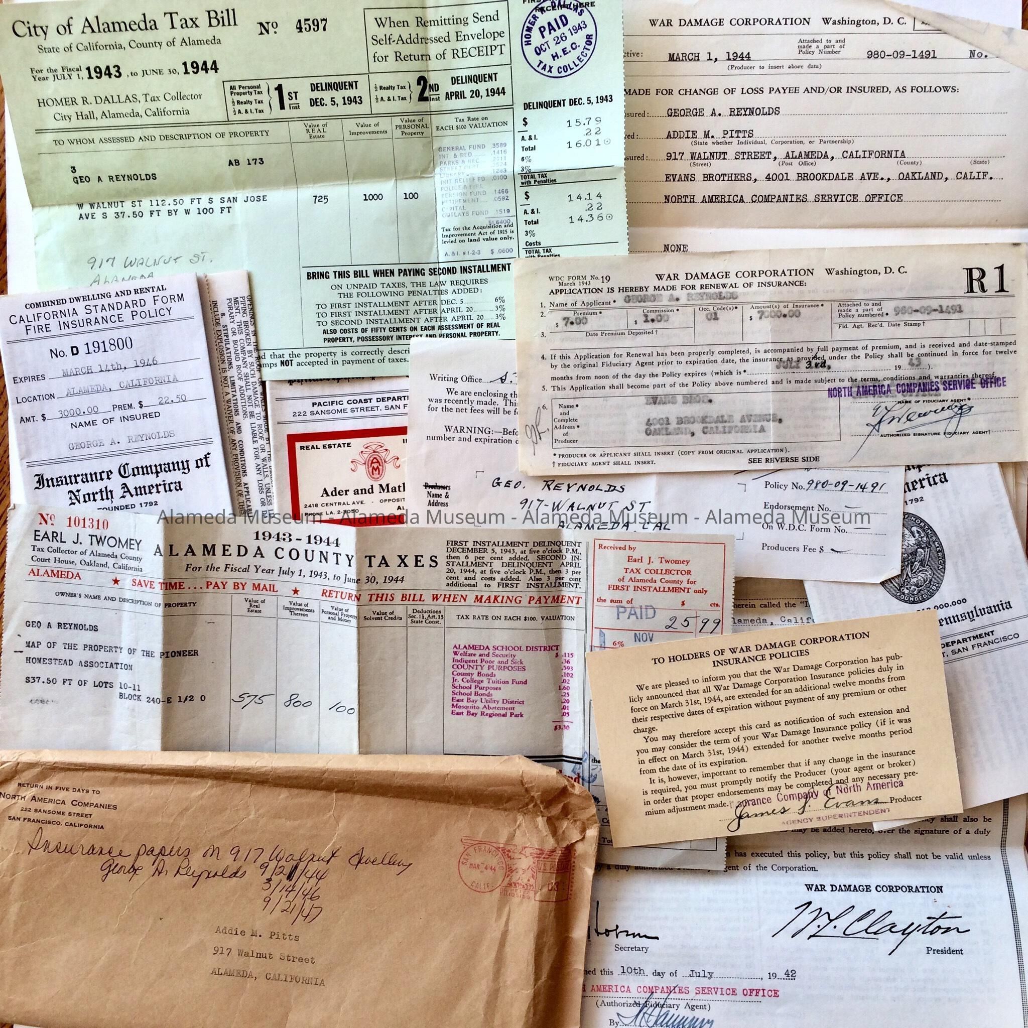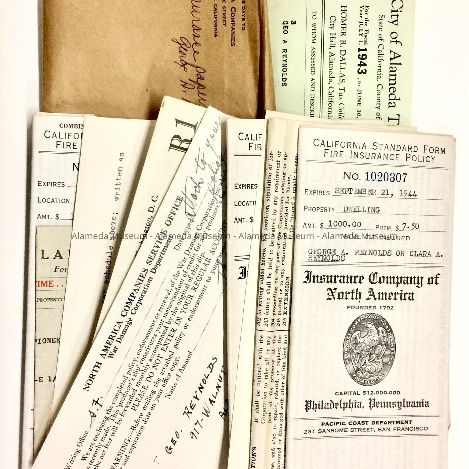 DESCRIPTION: A COLLECTION OF PAPERS INCLUDING/ INSURANCE POLICIES, ALAMEDA COUNTY TAXES, BILLING, ETC.