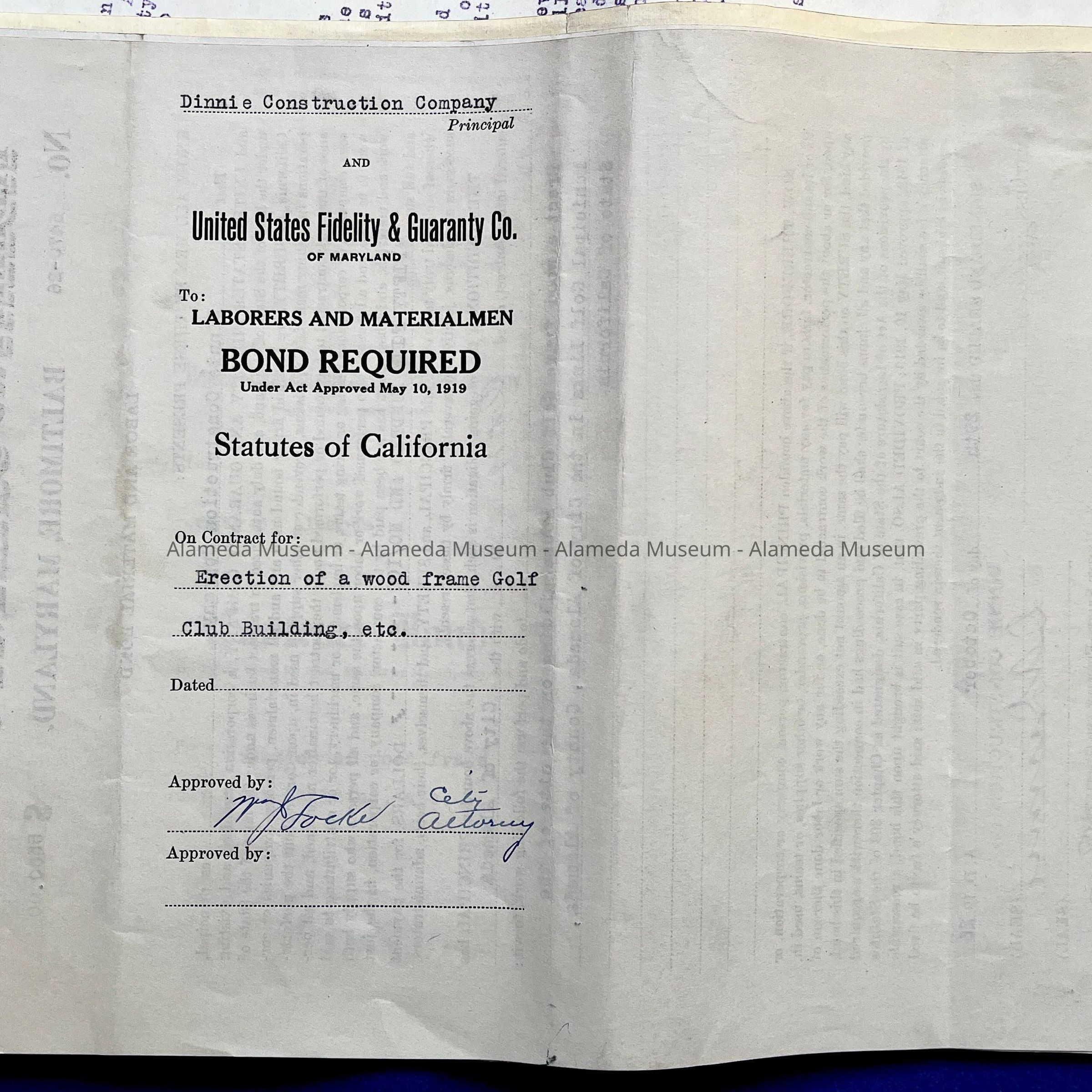 B. U.S. Fidelity & Guaranty Co. Labor and Material Bond and Contract Bond for building the Golf Club House.