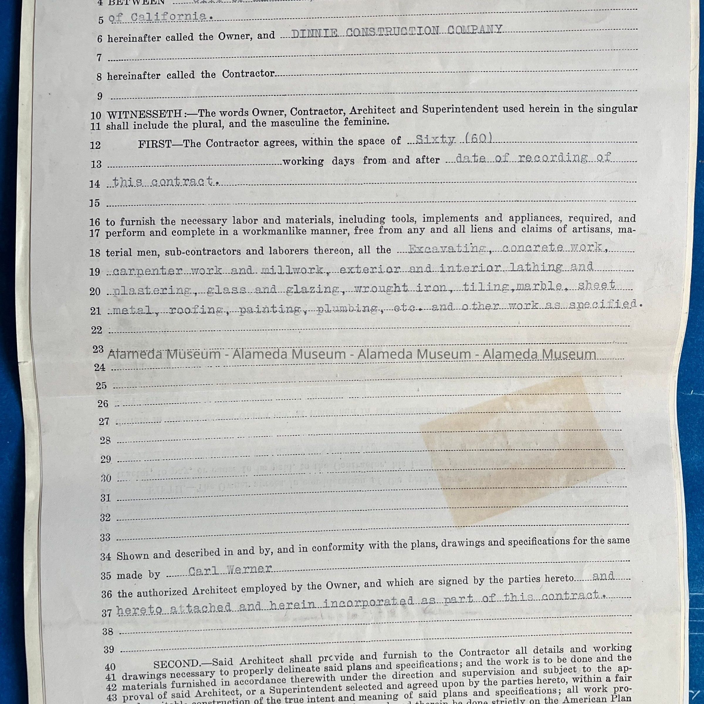 A. Blueprints by Carl Werner for the Golf Club House, still standing today. Werner also designed firehouses in Alameda.