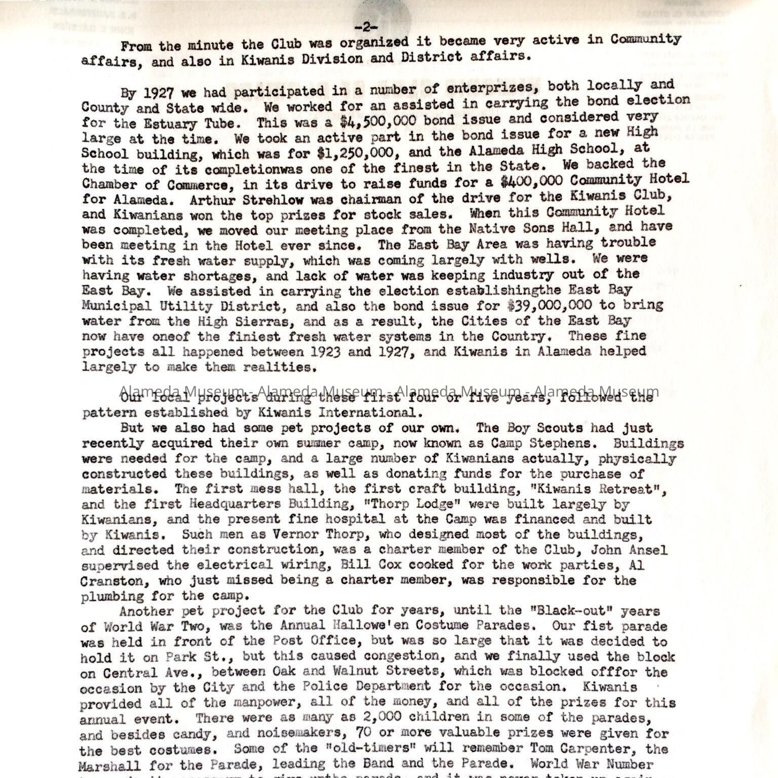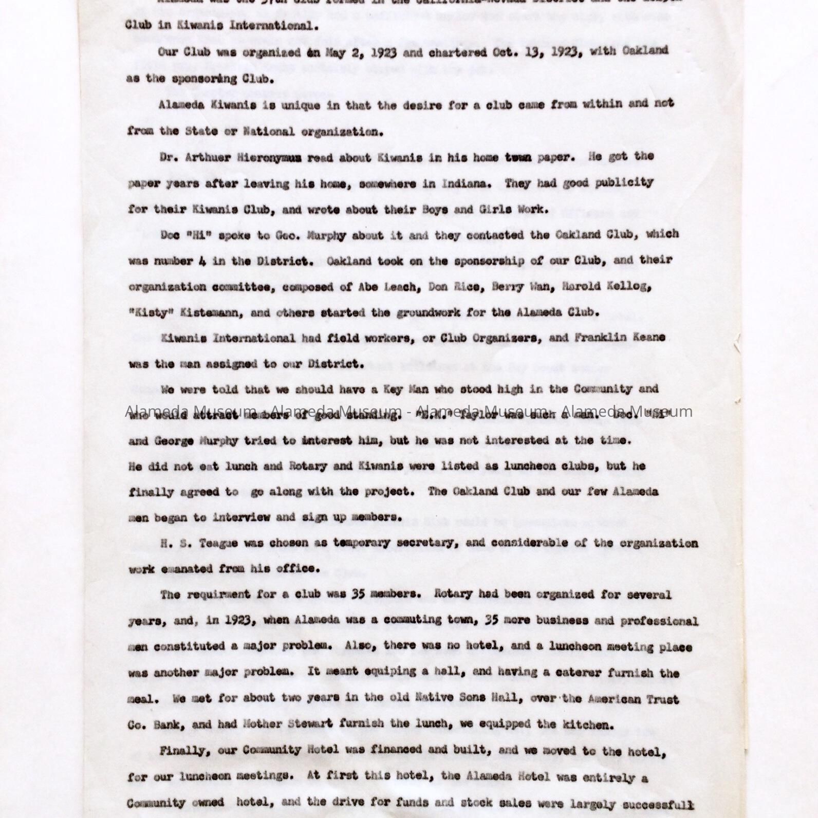 Draft 'History of the Alameda Kiwanis Club', 1958Entry/Object ID
