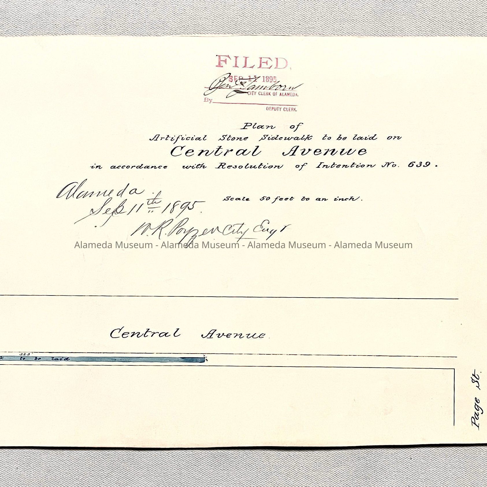 Drawing of a plan for artificial stone sidewalks on Central Ave, 1895Entry/Object ID