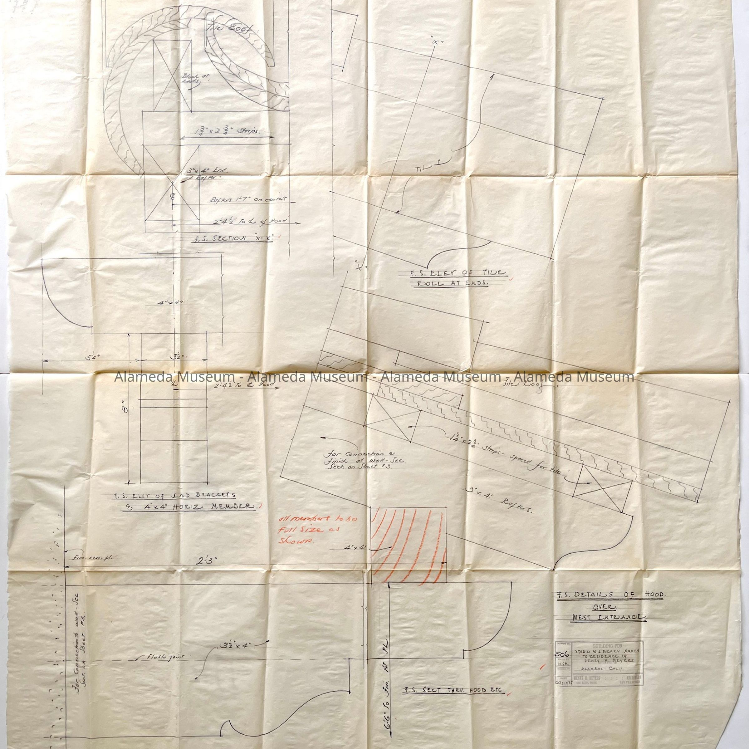 Drawing of hood of side entrance of Studio and Library Annex, 2021 Alameda Ave, 1935Entry/Object ID