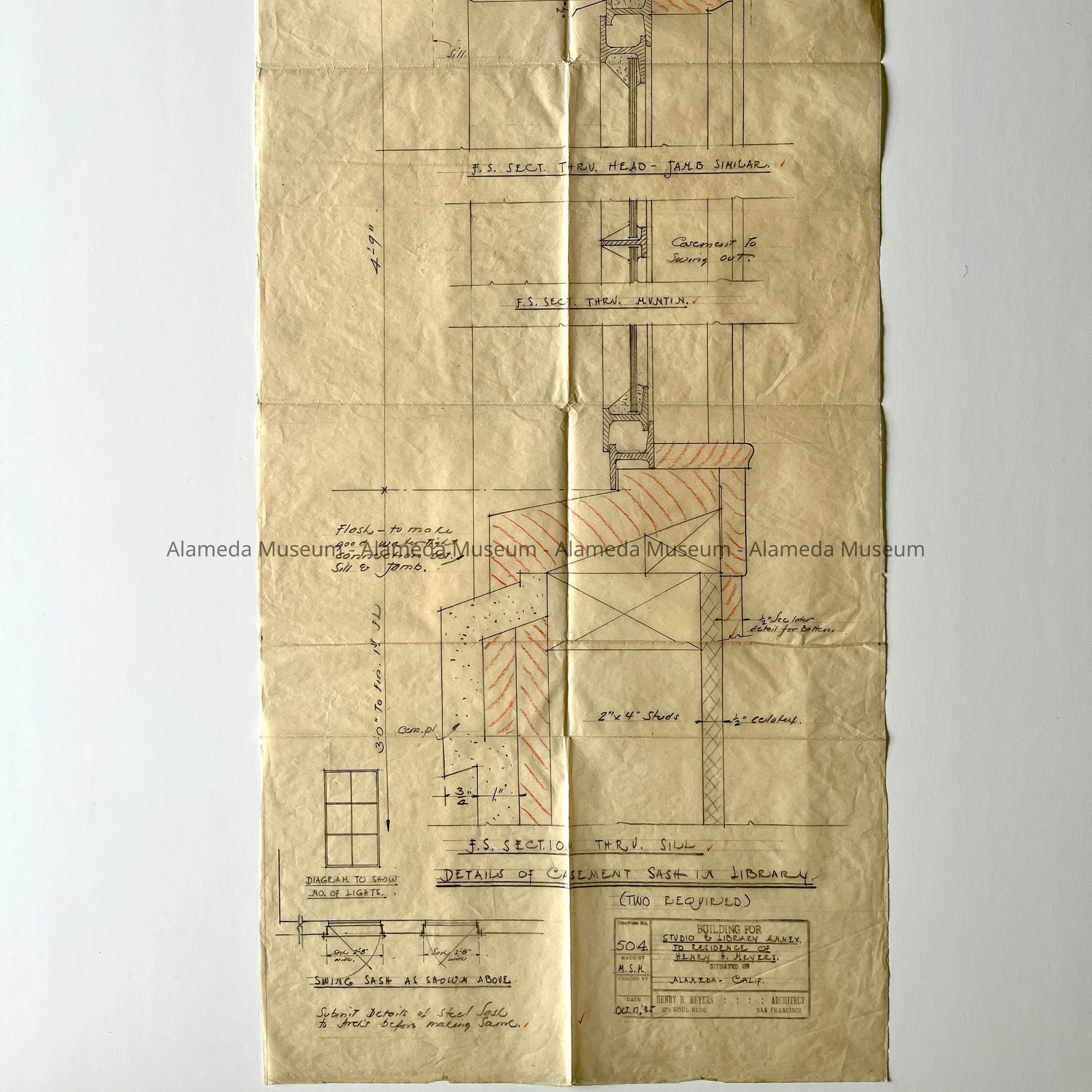 Drawing plan of window of library room, studio / library annex, Meyers House, 1935Entry/Object ID