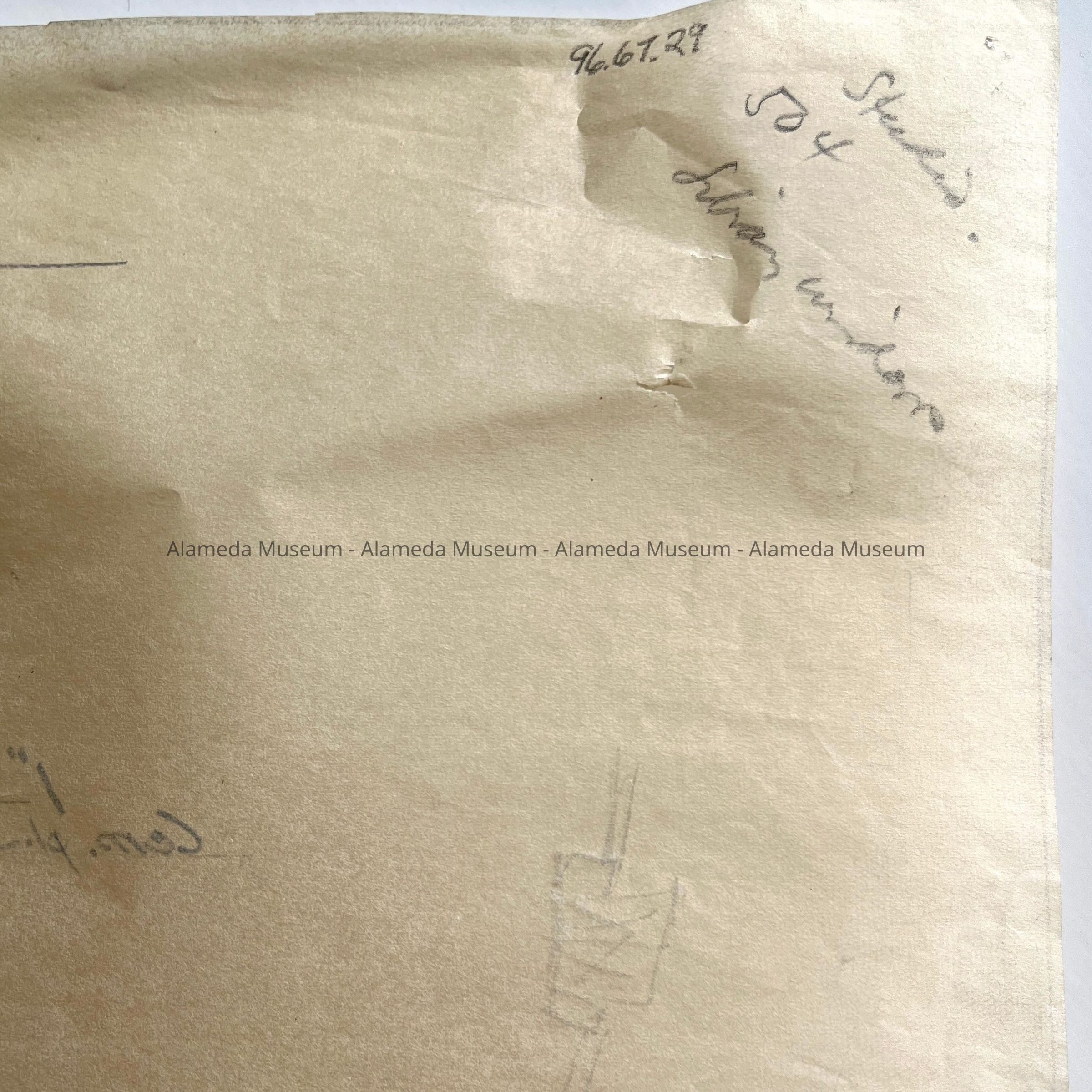 HISTORY OF OBJECT: PLAN ILLUSTRATING DETAILS OF CASEMENT, SASH, SILL, ETC. OF LIBRARY ROOM, STUDIO AND LIBRARY ANNEX, HENRY H MEYERS' RESIDENCE. DRAWN BY MILDRED S MEYERS, HENRY'S DAUGHTER, OCTOBER 17, 1935.