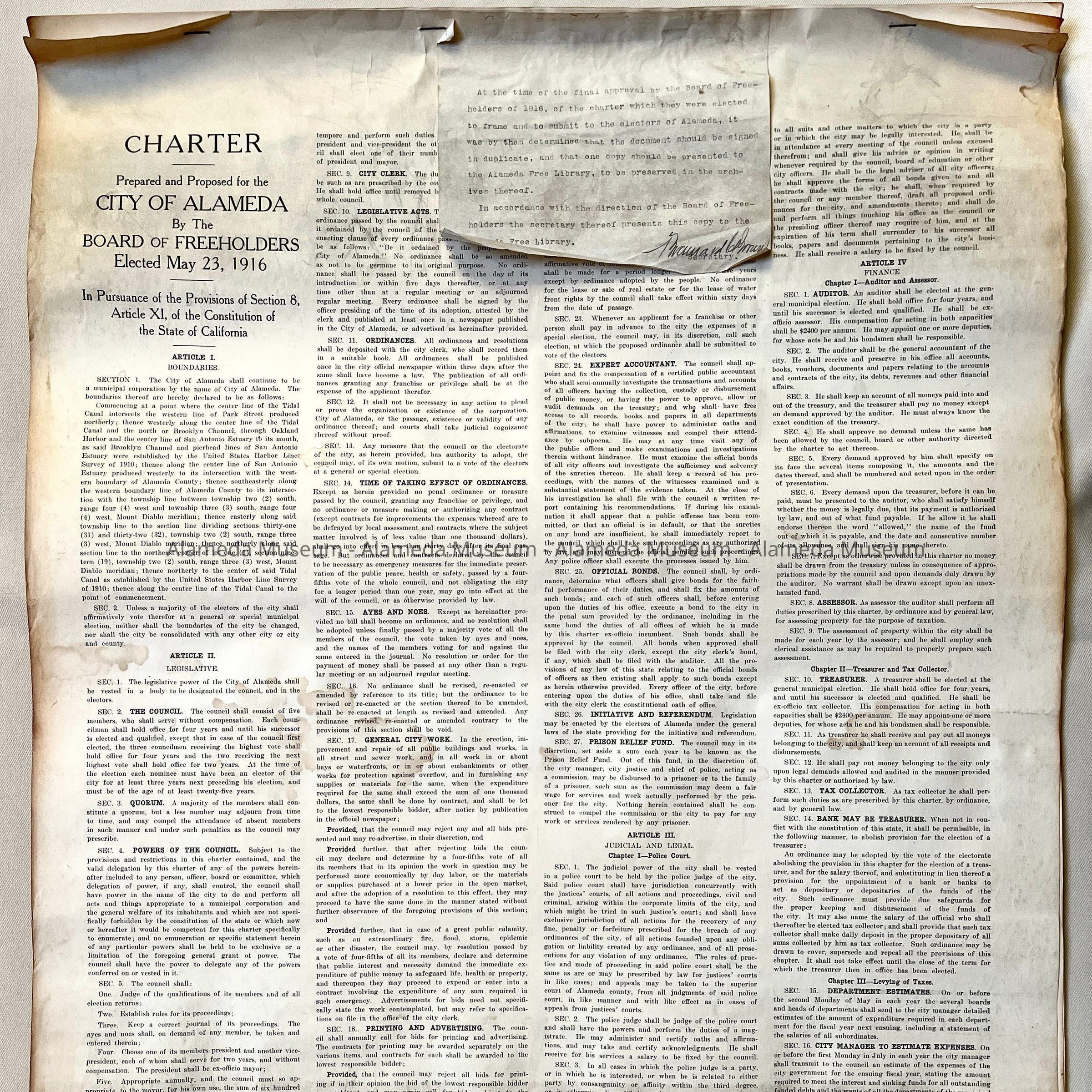 Duplicate Original Proposed Charter for the City of Alameda, 1916
