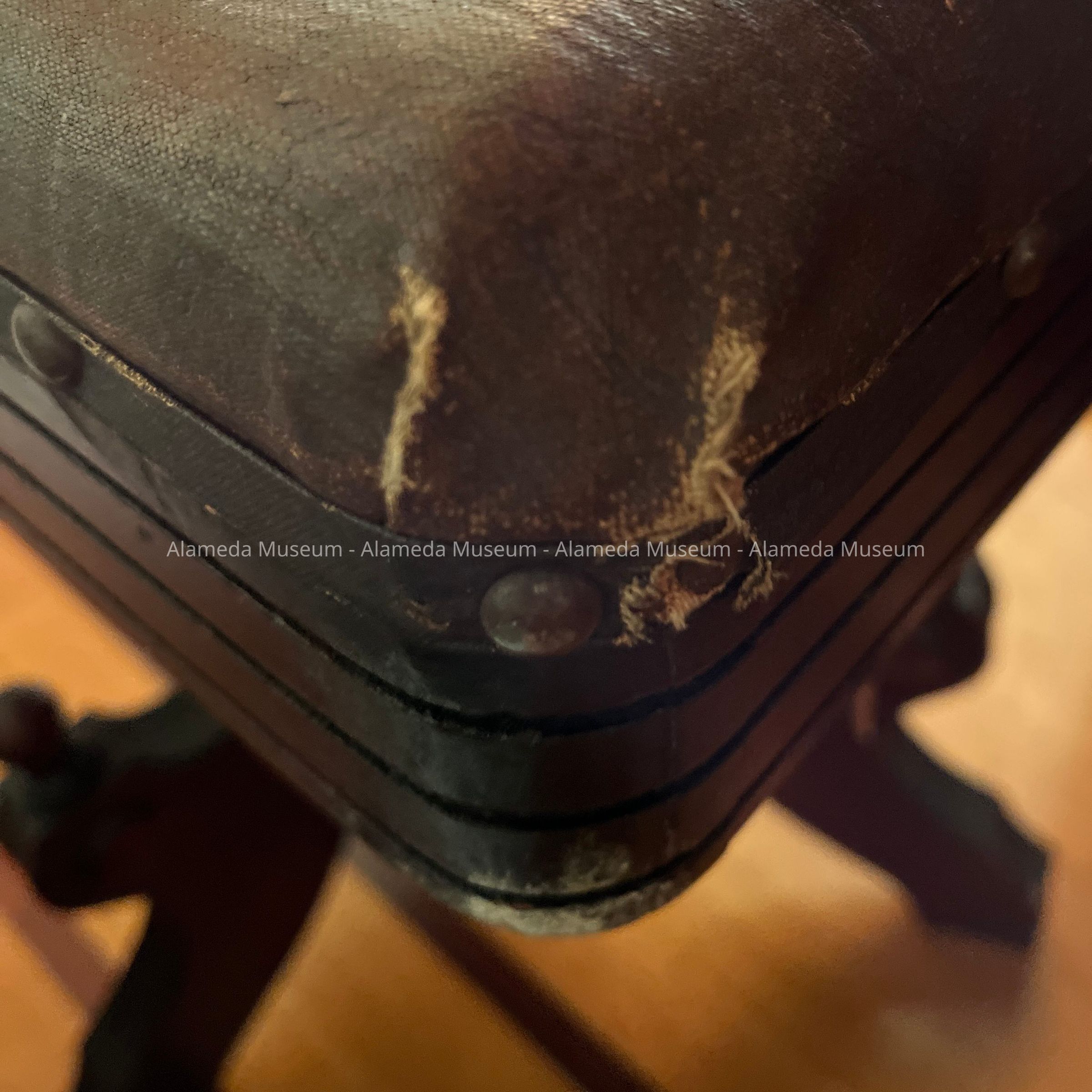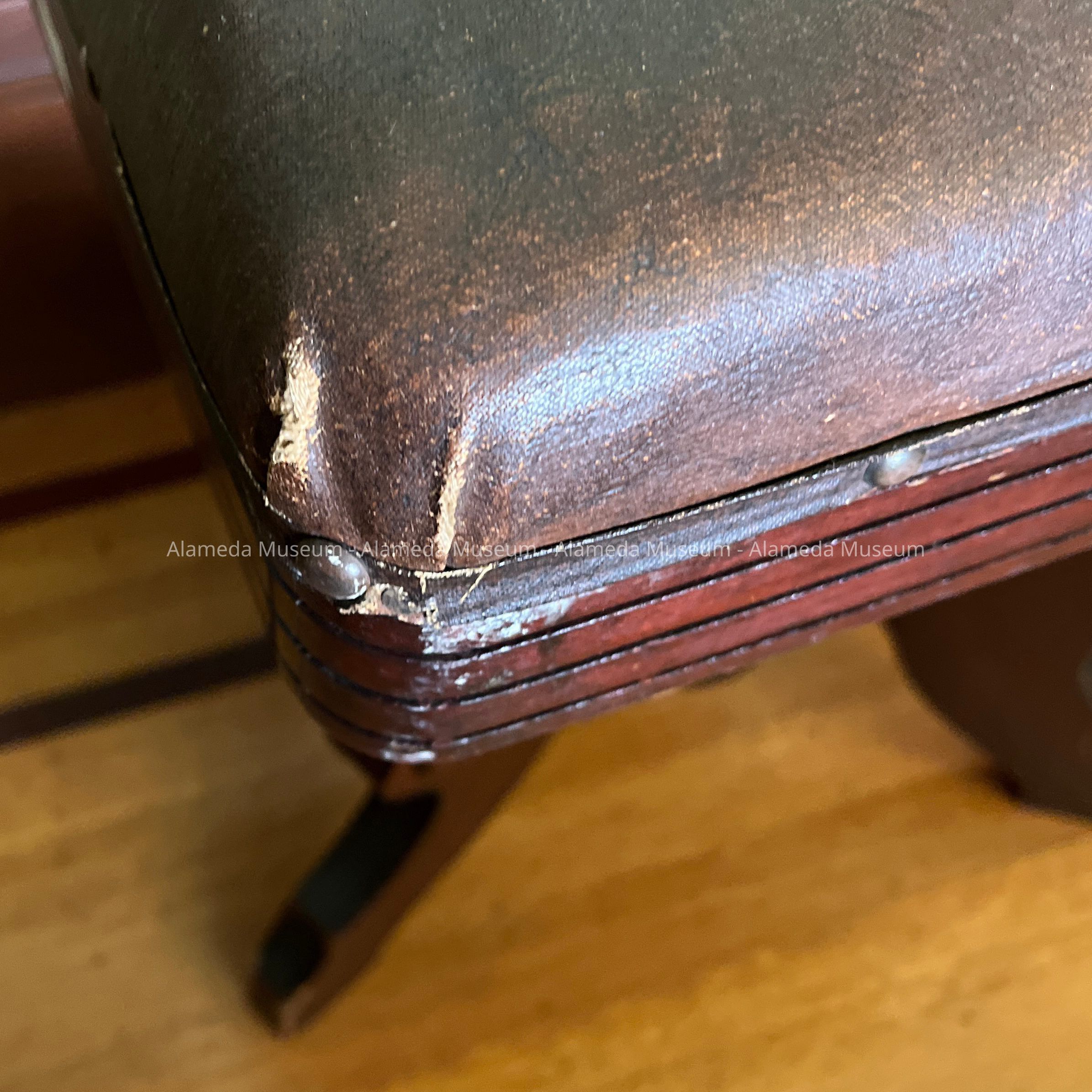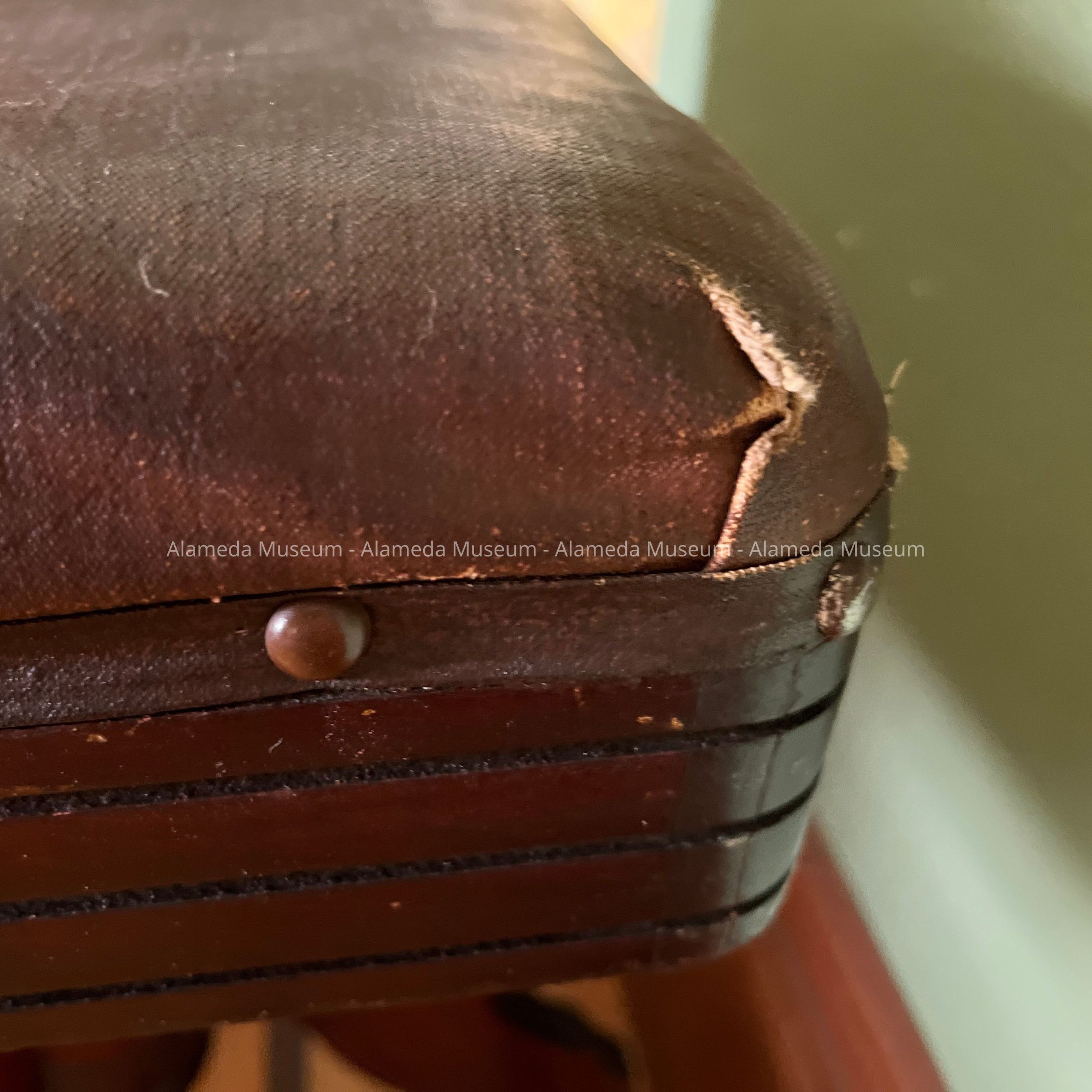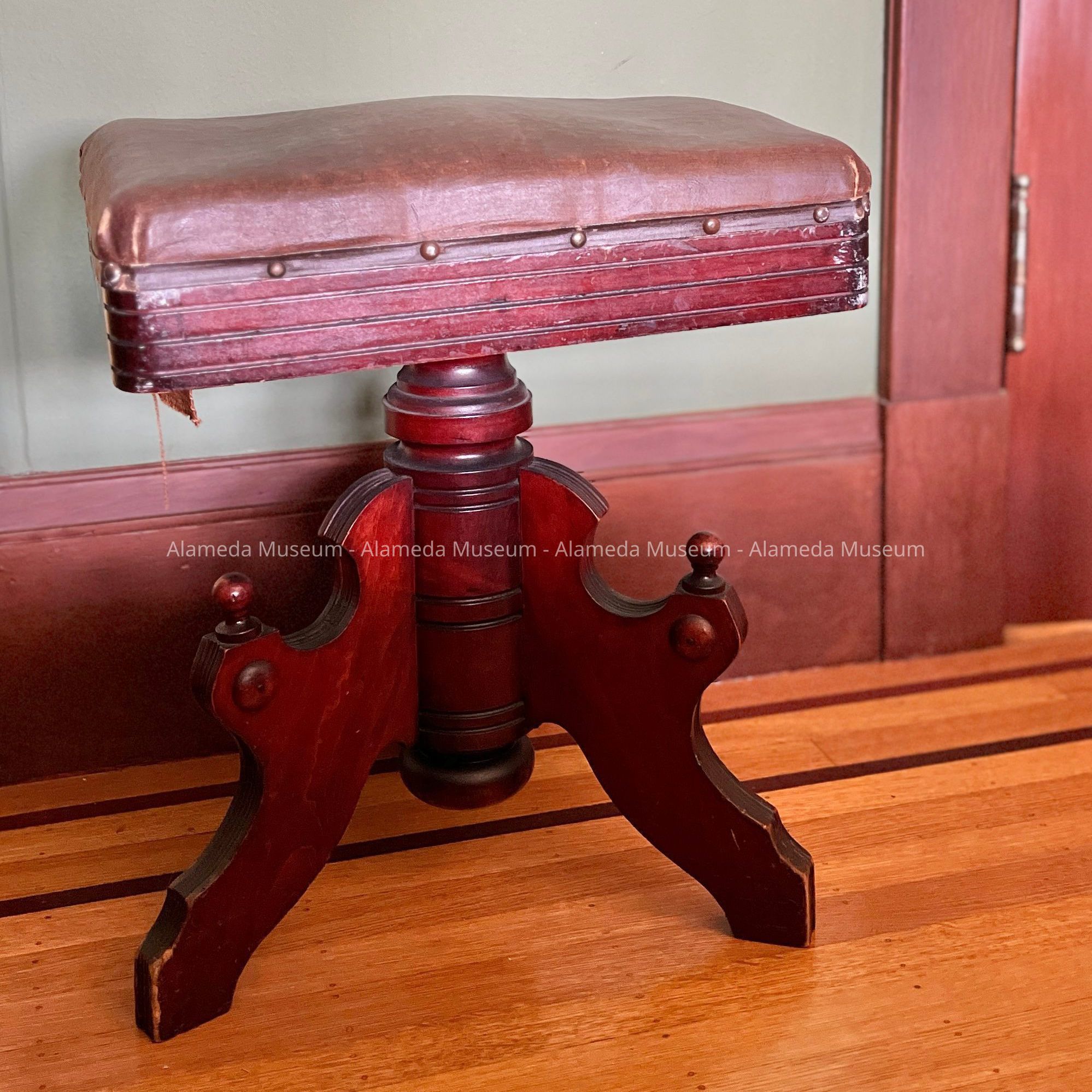 Eastlake-style piano stool with three legs and leatherette upholstery, c. 1880sEntry/Object ID