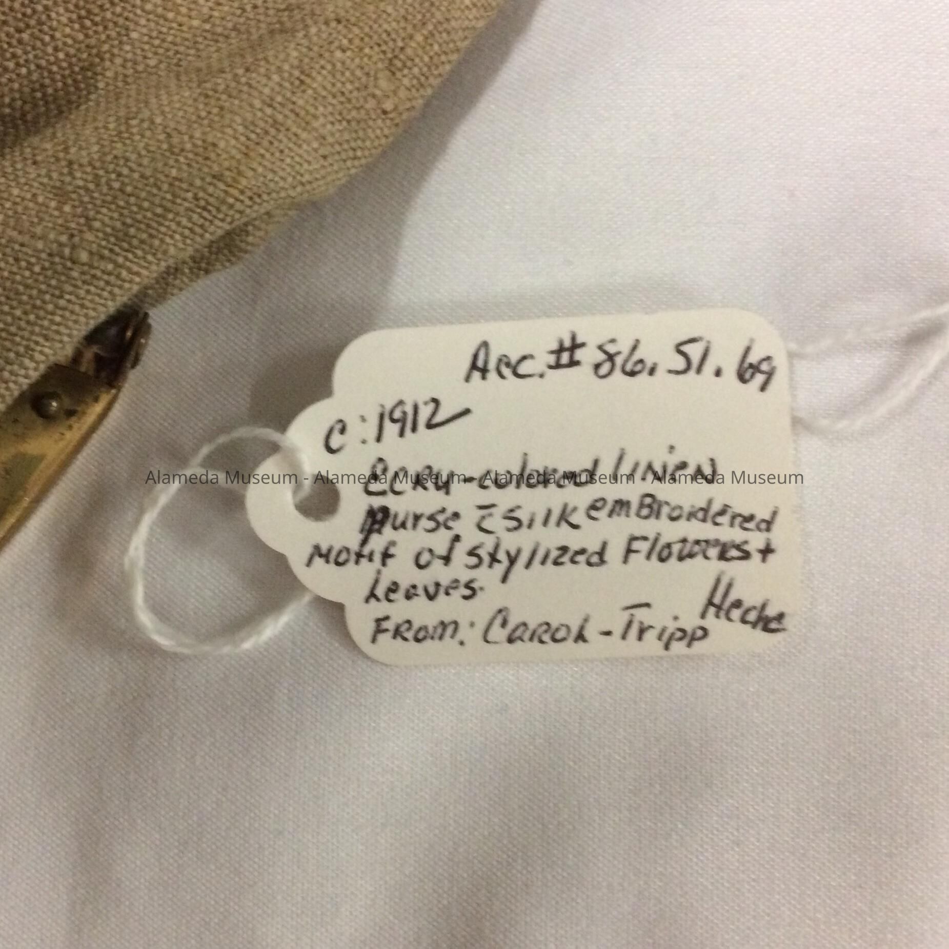 Linen purse from the costume collection of the late-Carol Tripp Heche.
