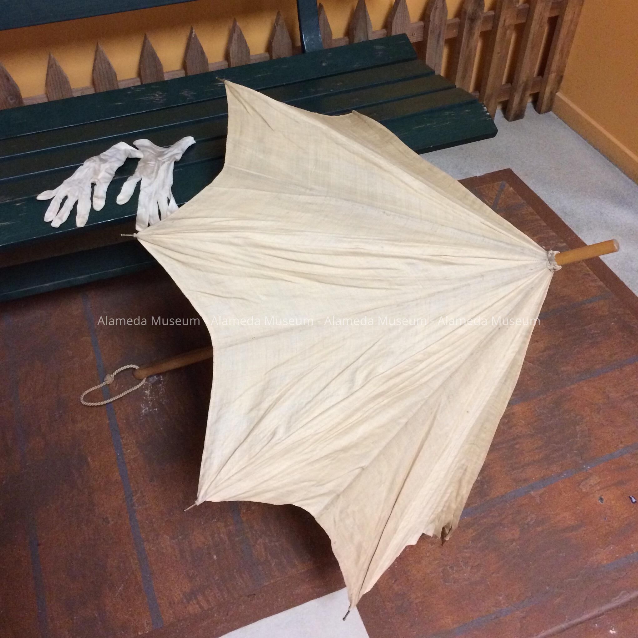 Ecru Silk Summer Parasol with wooden handle of Mrs. Blake, 2008 Clinton Ave, early 1900sEntry/Object ID
