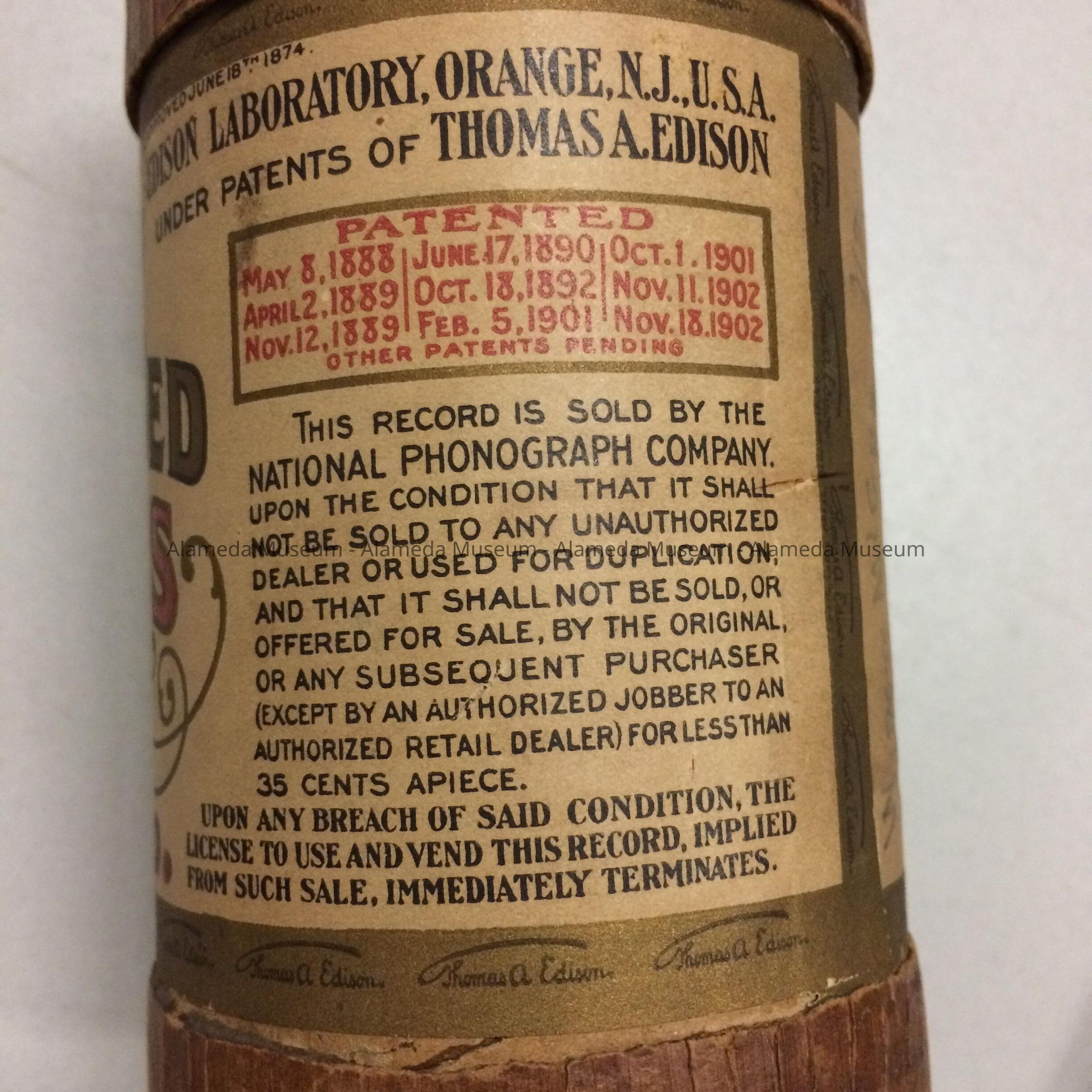Blank that was used to record a recitation performed by W. F. Chipman (son of Wm. W. Chipman, co-founder City of Alameda) entitled "Widow McKee."