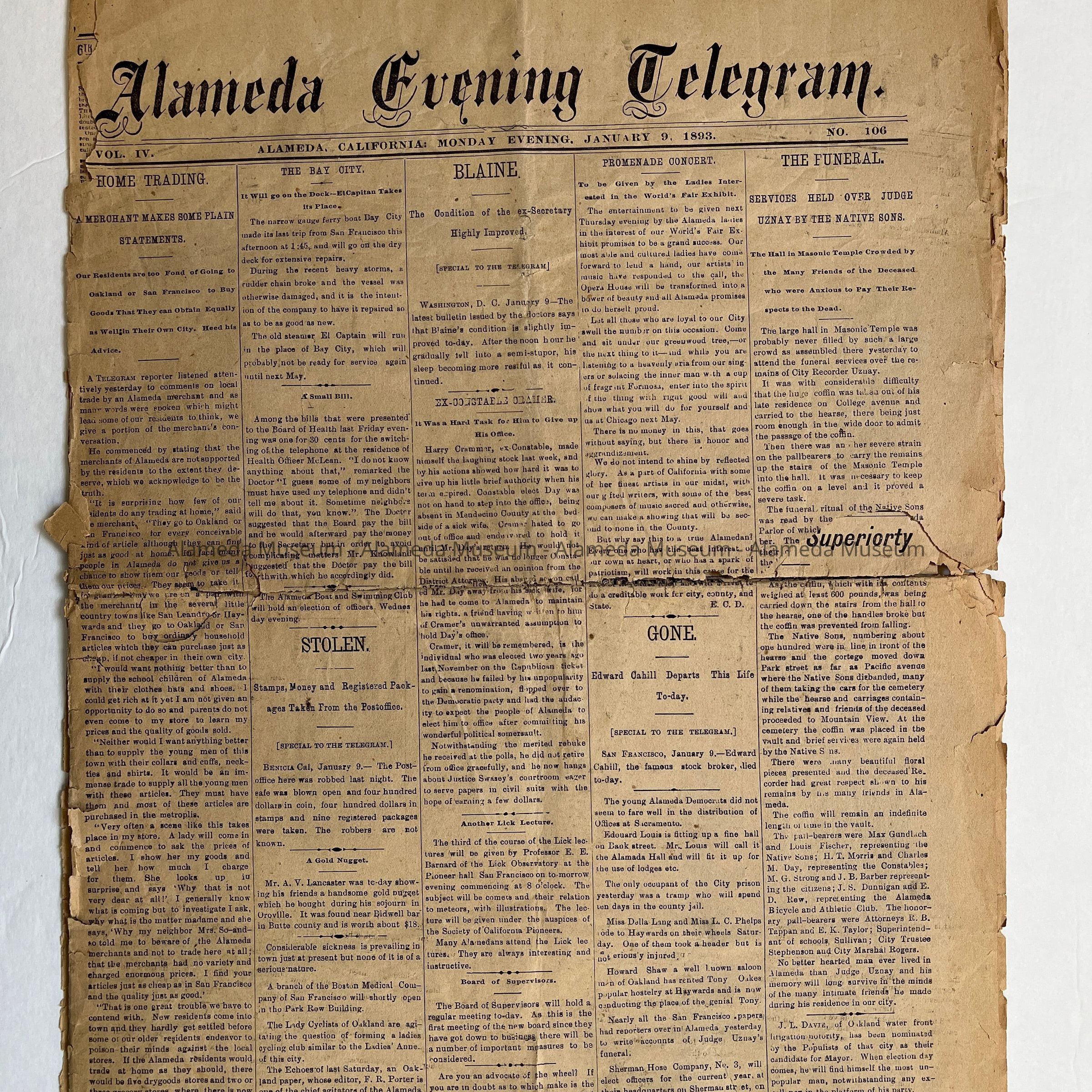 Edition of the Alameda Evening Telegram, 1893Entry/Object ID