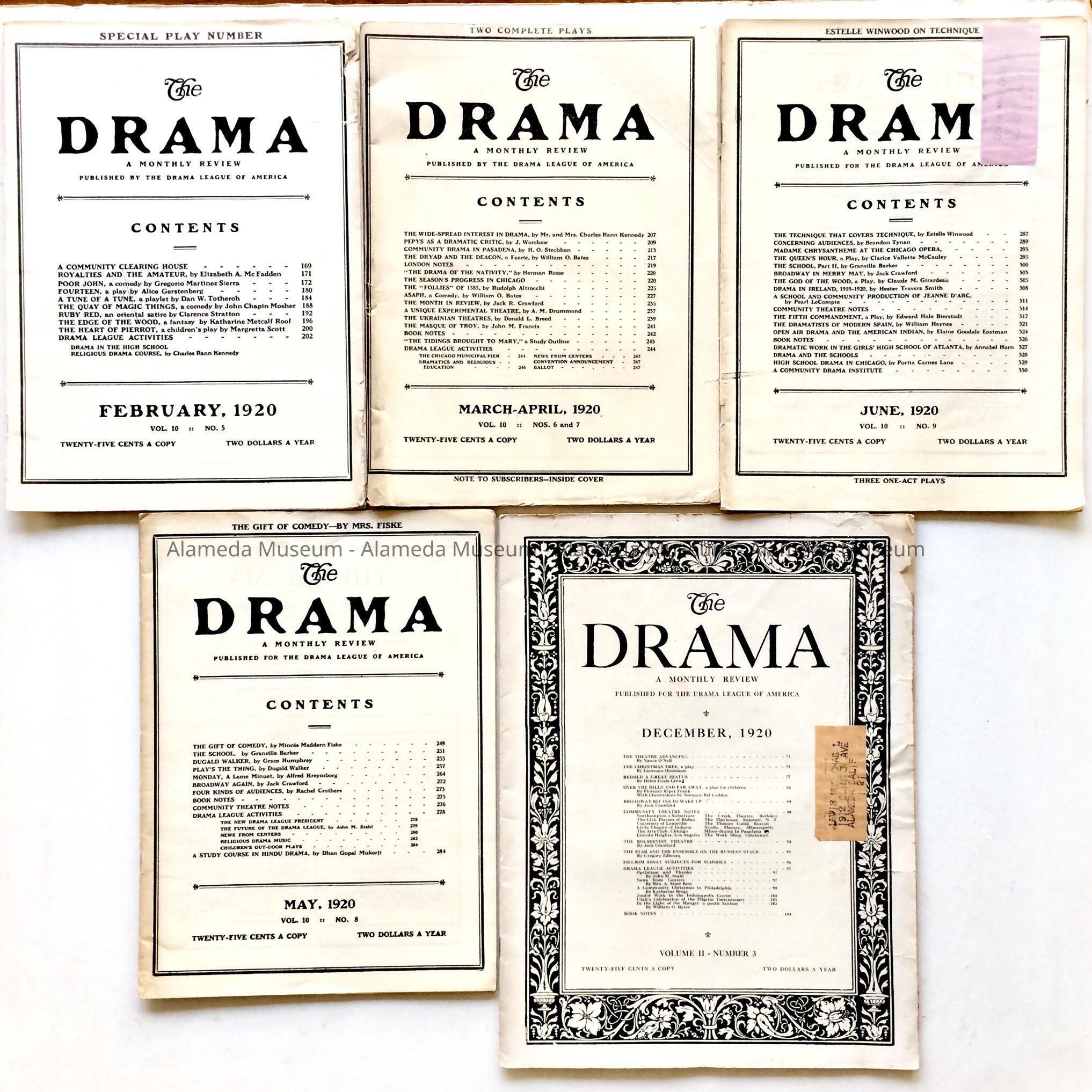 HISTORY OF OBJECTS: A REFERENCE PUBLICATION OF "THE DRAMA," A MONTHLY REVIEW PUBLISHED BY THE DRAMA LEAGUE OF AMERICA FOR FEBRUARY, MARCH, APRIL, MAY, JUNE, AND DECEMBER 1920. THEY WERE THE PROPERTY OF THE SHAKSPERE CLUB.