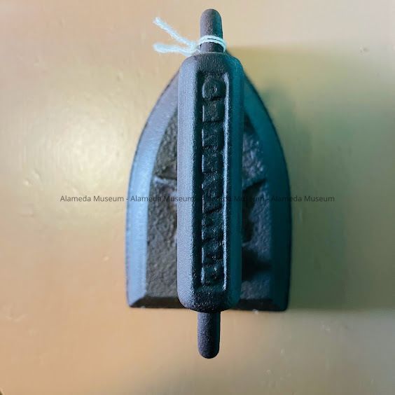 Description: An eight-pound clothing sad iron with an attached handle on which is the inscription: "Geneva, ILL".