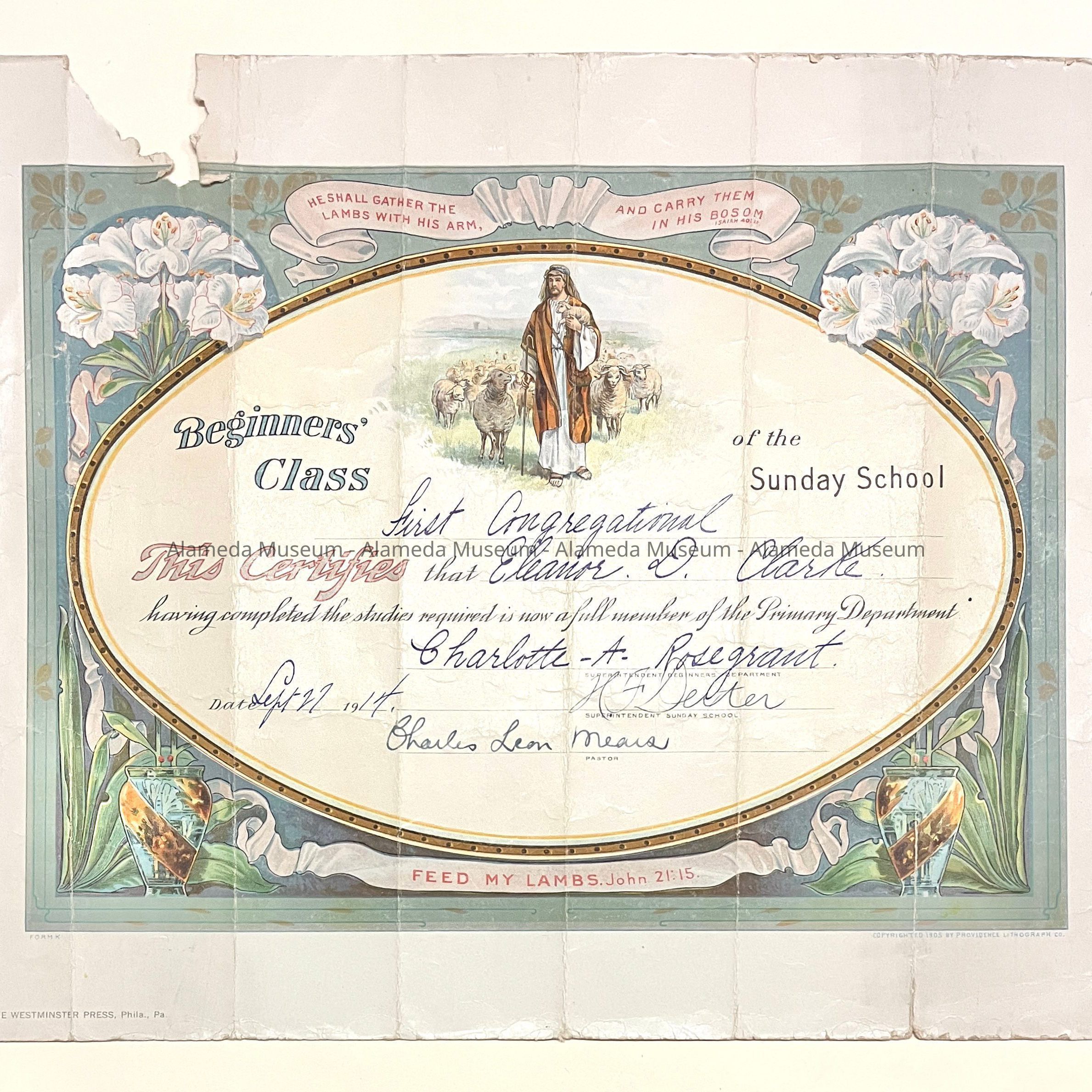 Eleanor D. Clark's Sunday School Certificate First Congregational Church, 1914Entry/Object ID
