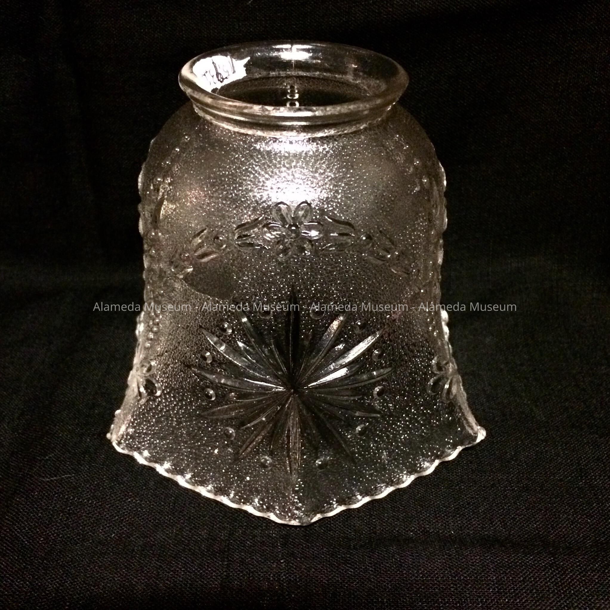 HISTORY OF OBJECT: AN EARLY ELECTRIC SHADE FROM 810 TAYLOR AVENUE, ALAMEDA, STILL STANDING. THE HOME MAY HAVE BEEN CONSTRUCTED IN 1896.