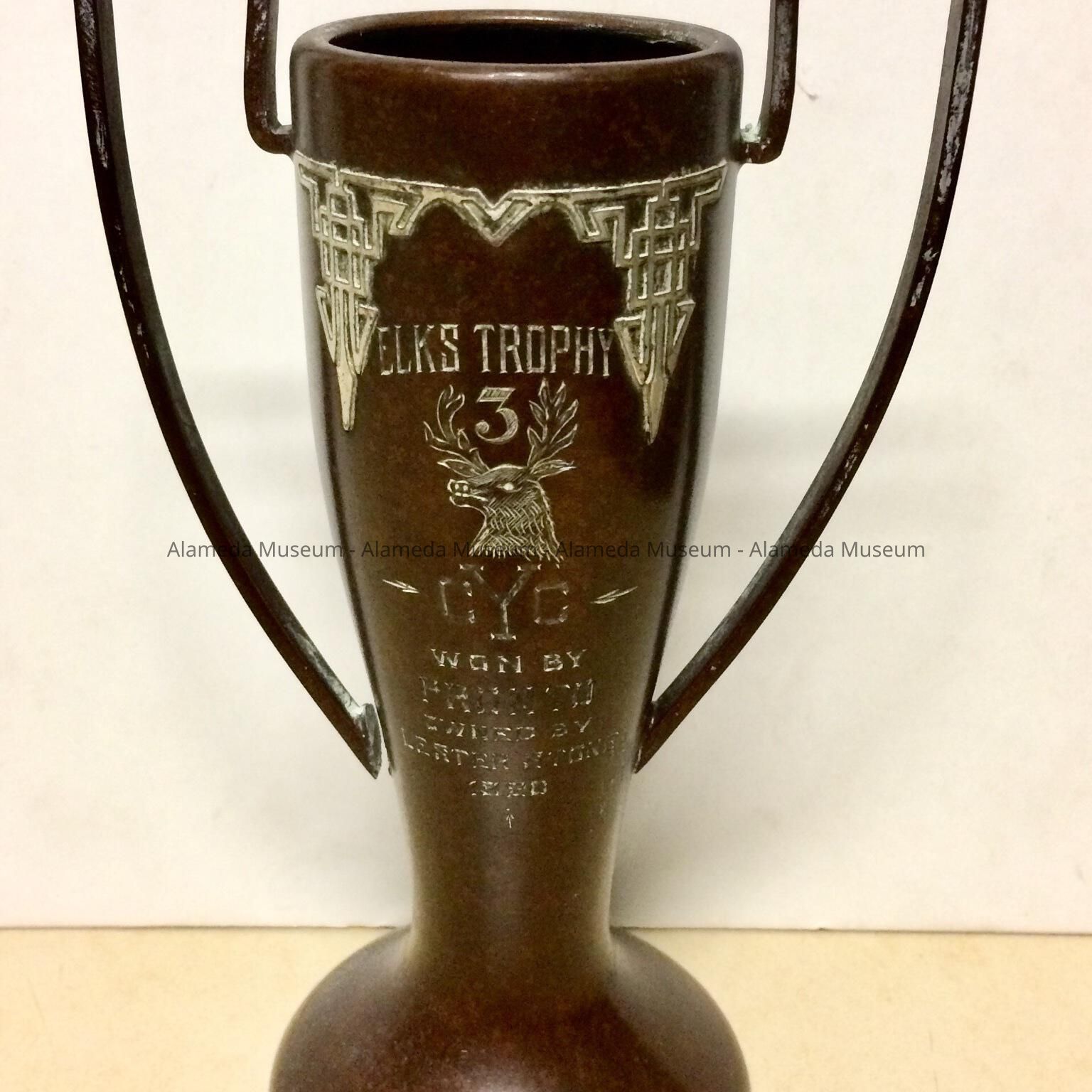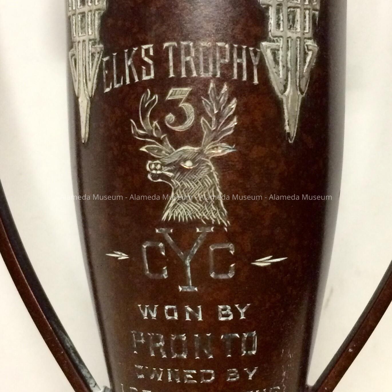 History of Object: A trophy inscribed, "Elks Trophy 3-CYC won by Pronto," owned by Lester Stone.