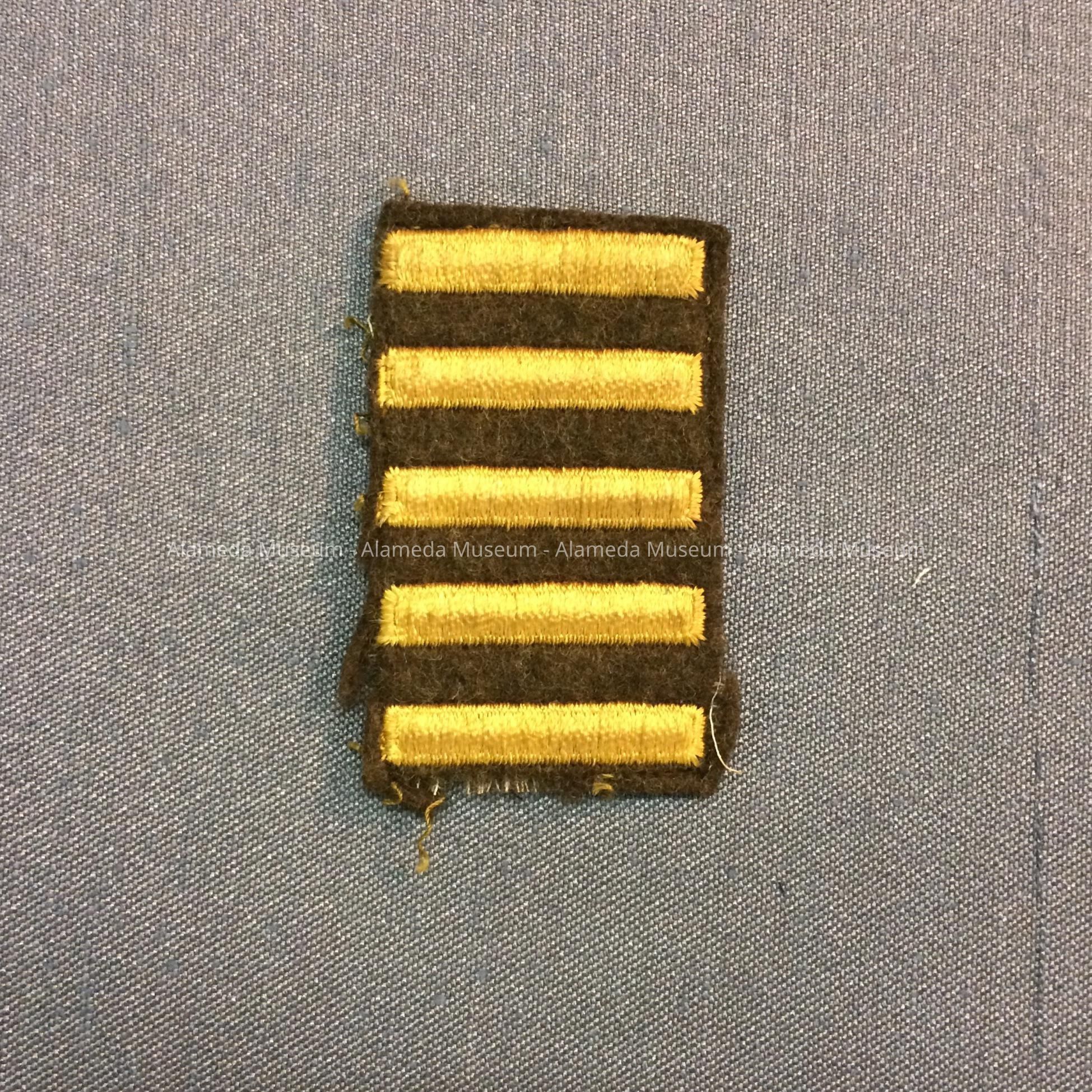 INSIGNIA, CONSISTING OF FIVE EMBROIDERED HORIZONTAL STRIPES ON A KHAKI BACKGROUND.