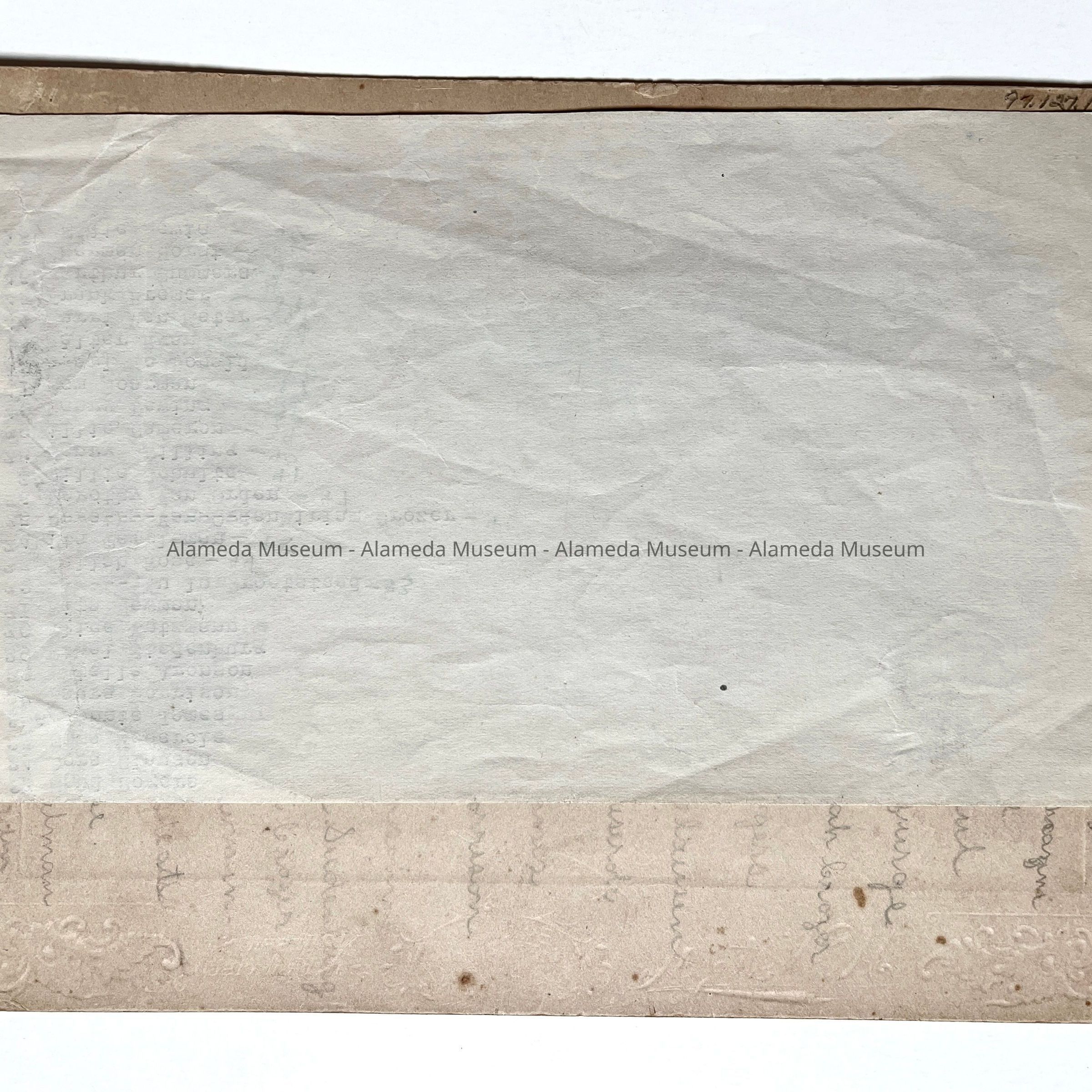 Description: Lt. sepia-toned albumen print photo mounted on tan paperboard. Photographer: H. Weitz & Co., S.F. (name incorporated into the filigreed mounting ornamentation). The image is somewhat faded. The mounting shows some scraping at its edges.