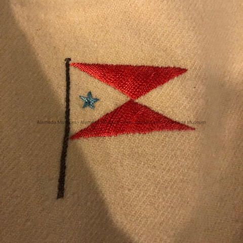 The embroidered flag emblem, is the original burgee of the Encinal Yacht Club (changed around 1910 to a pennant shape).