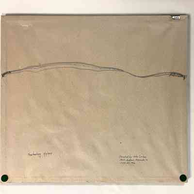 Description: Enlarged black/white photo with typeset captions at bottom margin, both of which are mounted on grey colored paper stock in a hard wooden frame having a walnut finish.