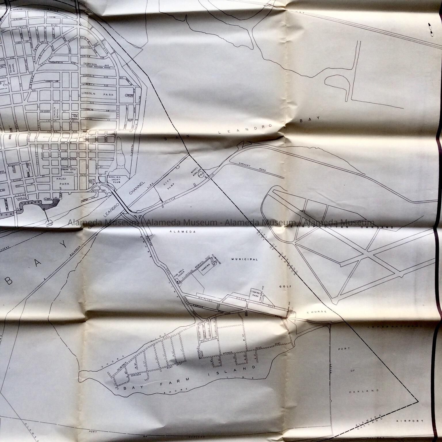 MAP OF THE CITY OF ALAMEDA, ENLARGED, FOR THE PERIOD 1962. MAP SHOWS DEVELOPMENT ON BAY FARM ISLAND UP TO THAT PERIOD.