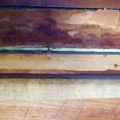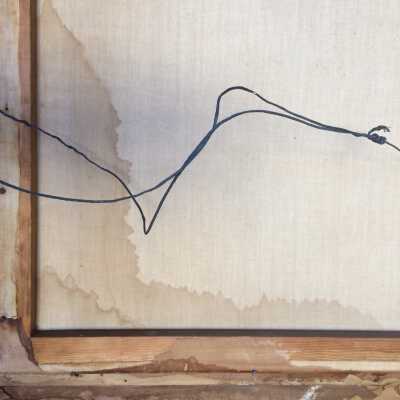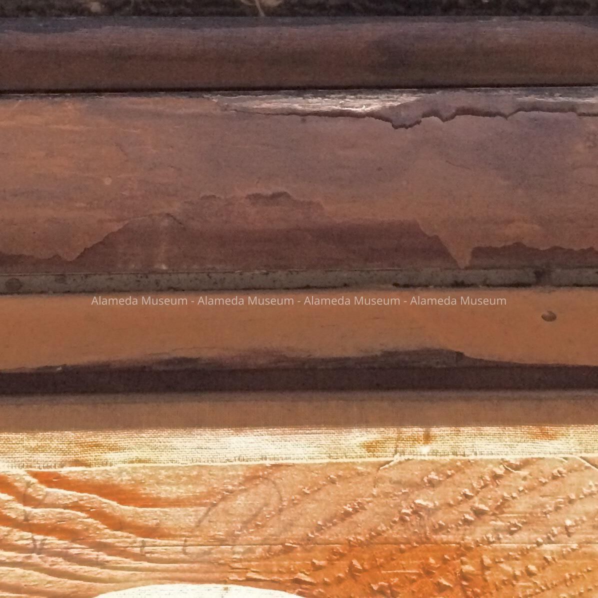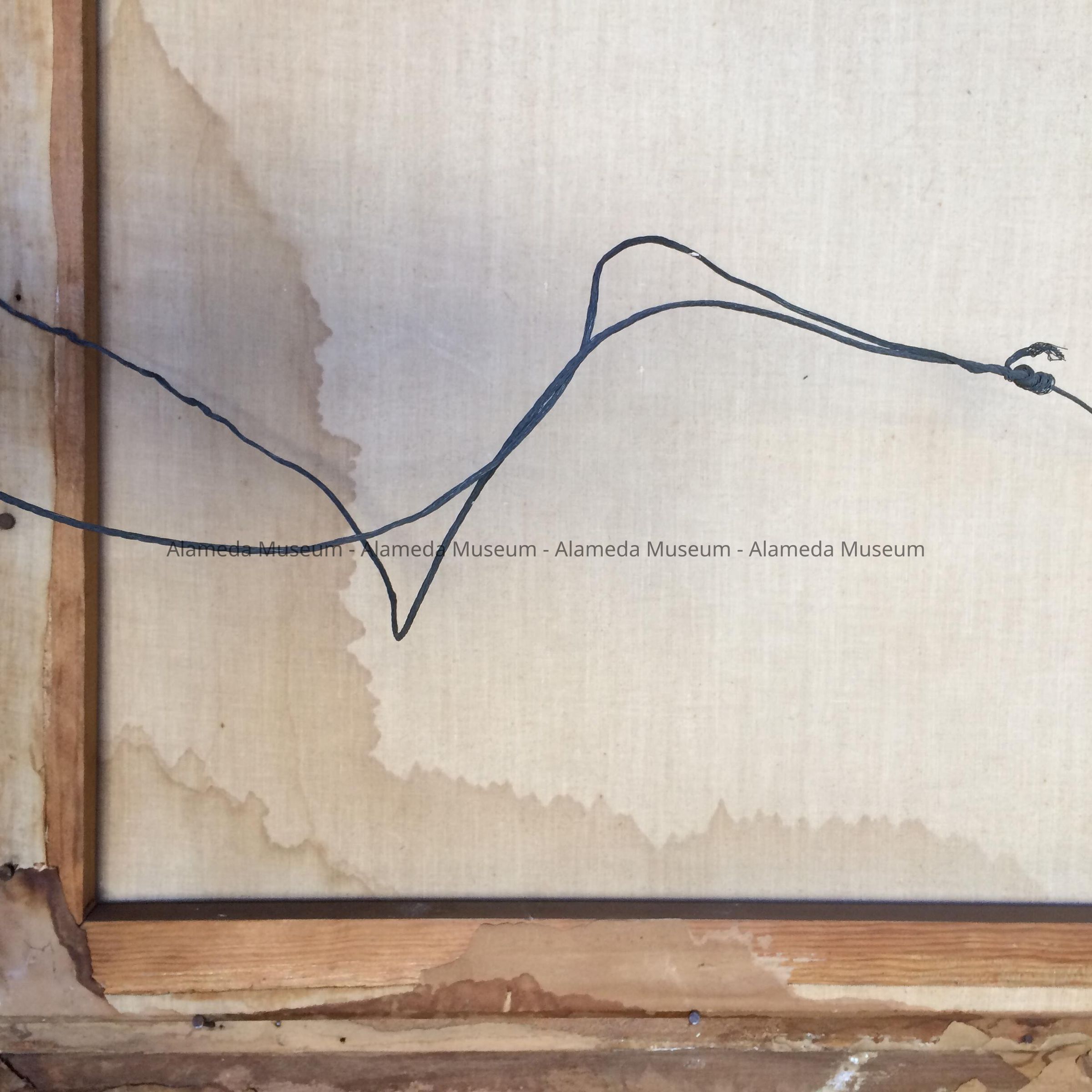 Photo is signed Marceau, S.F., and is mounted on linen on a canvas stretcher. Frame (not original to subject) is composed of three sections of molding. Outer section embossed gesso in a wheat and flower motif, inner section is ebonized with incised design in white, inner liner is embossed in an ornate gesso design.