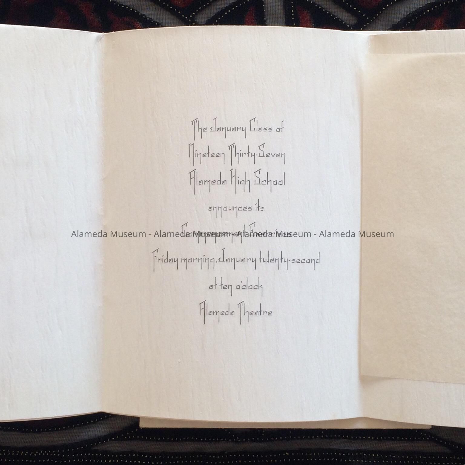 AN INVITATION, ACCOMPANIED BY AN ENVELOPE, ISSUED TO JACK HANLY, TO HIS GRADUATING CLASS OF JUNE 22, 1937 CEREMONY OF ALAMEDA HIGH SCHOOL.