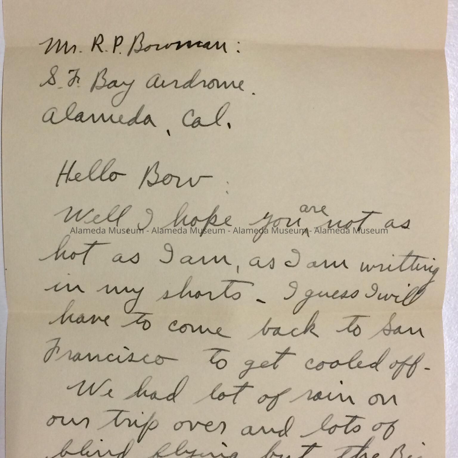 History of Object: Letter & envelope addressed to Ray Bowman, San Francisco Bay Airdrome, from Theron E. Griffin, Engineer Officer, Pan American Airways (China Clipper).