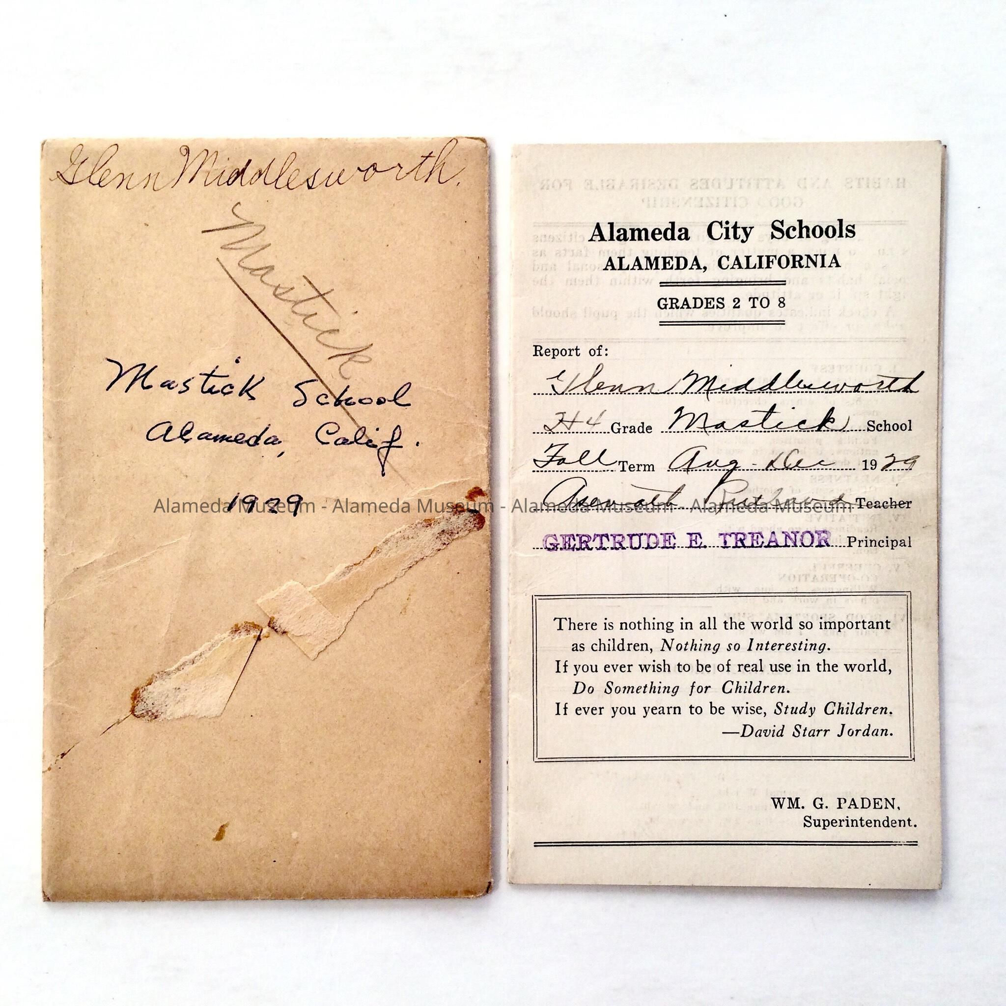 History of Object: Report card & envelope of Glenn Middlesworth, Mastick School, Fall session, 1929.